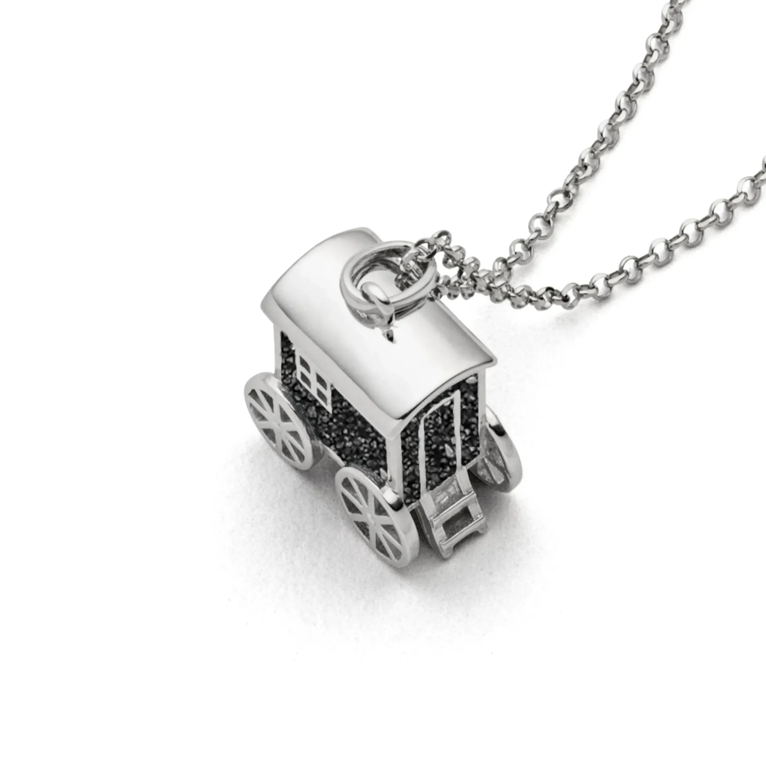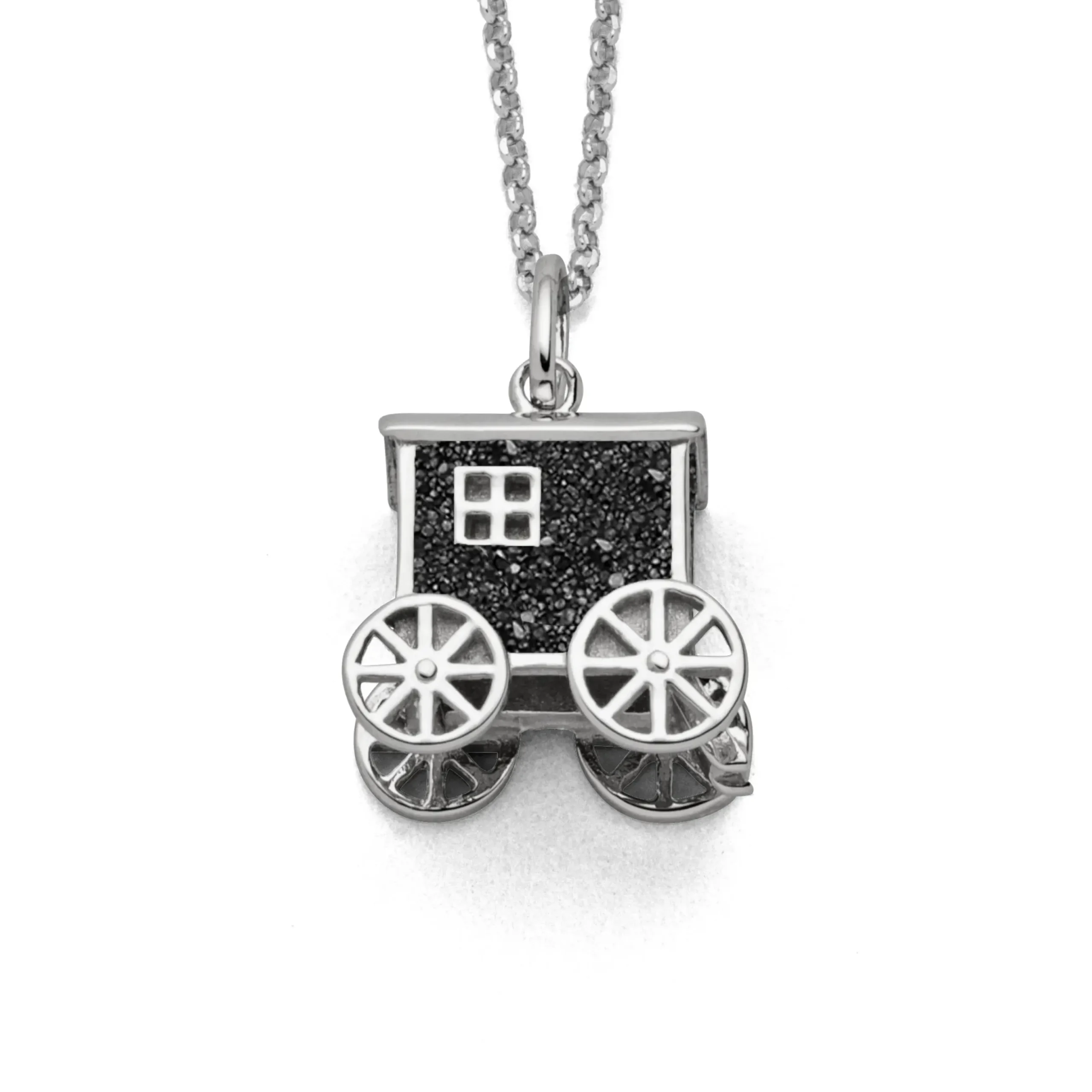 Echte Sehnsucht: Anhänger in Form eines Badekarrens, gefüllt mit Lavasand, alles aus poliertem und rhodiniertem 925er Sterling-Silber