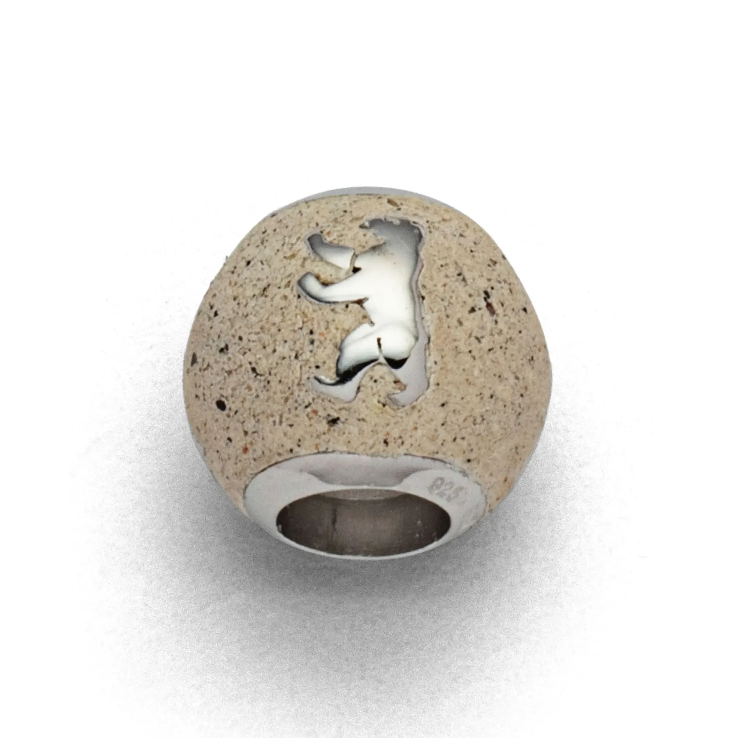 Weltbedeutende Geschichte in einem Schmuckstück veredelt! Für alle Berlin-Liebhaber, die ein Statement setzen möchten, ist dieser außergewöhnliche Anhänger mit echtem Steinsand der Berliner Mauer ein absolutes Must Have!Die pulsierende Hauptstadt fasziniert durch ihre einmalige Geschichte, beeindruckende Sehenswürdigkeiten und kulturelle Vielfalt. Als Erinnerung an einen schönen Aufenthalt, einen besonderen Lebensabschnitt, oder für alle, die Verbundenheit zur Heimatstadt zum Ausdruck bringen möchten, ist dieser schöne und zeitlose Anhänger daher unverzichtbar.Die Steinsandkugel verzaubert mit klarem, glänzenden Design und den drei silbernen charakteristischen Motiven „Funkturm, Brandenburger Tor und Berliner Bär“, gefasst in hochwertigem 925er Sterlingsilber.Besonderes Highlight dieses detailverliebten Anhängers ist die Verarbeitung von original Steinen der Berliner Mauer. Diese auf Echtheit geprüften Mauerreste beziehen wir von zertifizierter Stelle aus Berlin und verarbeiten sie liebevoll zu feinem Steinsand. Der Mauersand wird mit Edelharz gemischt, extrem verdichtet und geschliffen, um den Zauber der Stadt auf eleganteste Art und Weise einzufangen. So tragen Sie immer einen Teil Deutscher Geschichte bei sich. Einzigartige, glanzvolle und aussagekräftige Anhänger, die jedem Schmuckstück eine individuelle Note verleihen – das sind Beads. Die modernen Anhänger zeichnen sich durch ihre außergewöhnliche Kombination von feinsten Naturmaterialien mit hochwertigem, rhodinierten 925er Sterling Silber aus und erstrahlen in verschiedenen Designs mit unterschiedlichen Motiven.Die hohe symbolische Aussagekraft der verschiedenen Motive unterstreicht Ihre Persönlichkeit und macht den Anhänger zu einem idealen Begleiter für Ihren Alltag.Mit einem Innendurchmesser von 5 mm sind die Beads mit zahlreichen Halsketten oder gängigen Sammelarmbändern kombinierbar. Somit können Sie selbst Ihr individuelles Schmuckstück gestalten.
