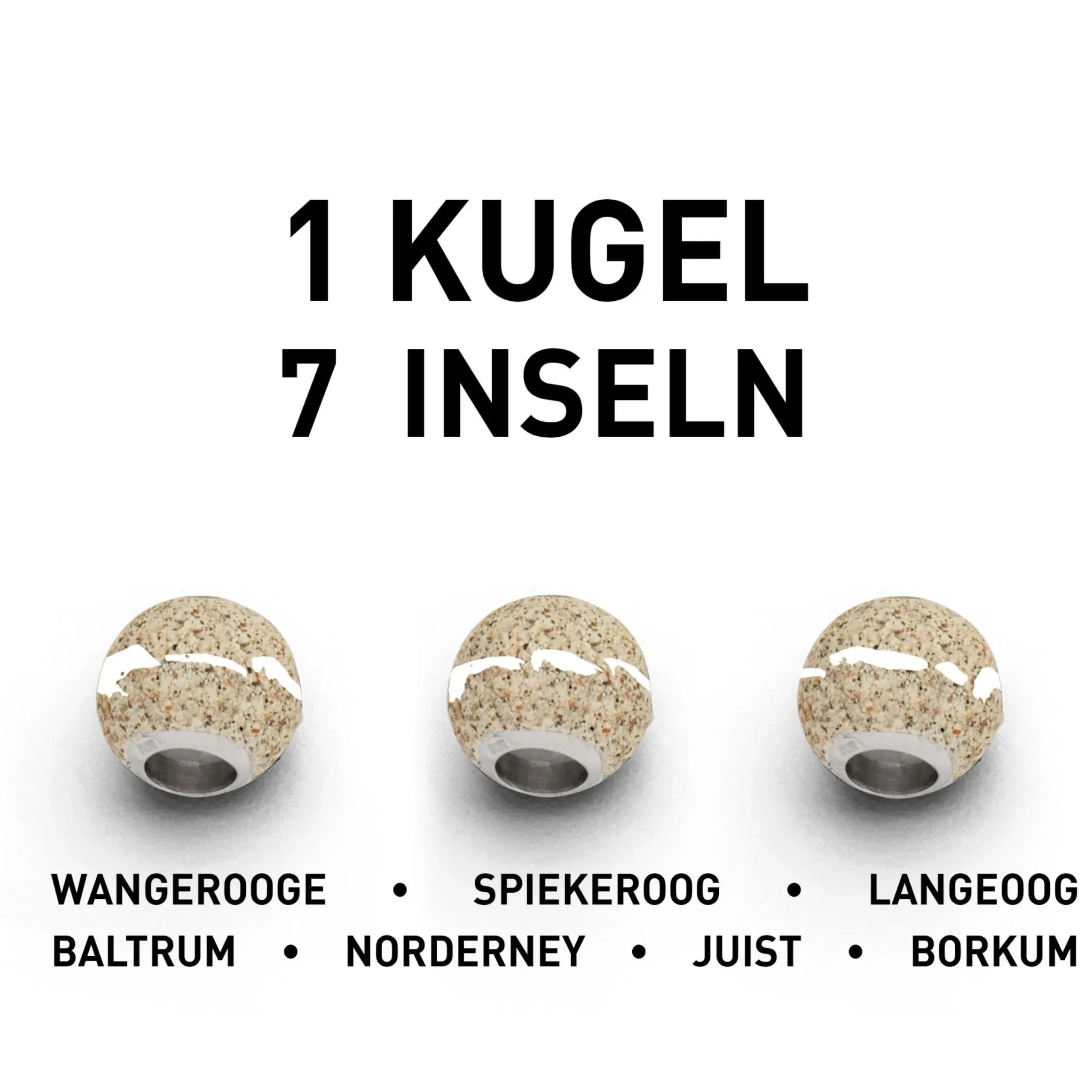 Ein einziger Blick und Sie sind im Urlaub. Denn Sie tragen ihn jetzt immer bei sich. Als Erinnerung an schöne Urlaubsmomente, aber auch für alle die Meer und Strand lieben, oder ein maritimes Statement setzen möchten, ist dieser schöne Anhänger unverzichtbar.Die Strandsandkugel ist eine Hommage an die Nordsee und verzaubert mit den filigranen silbernen Silhouetten der 7 nordfriesischen Inseln Borkum, Juist, Norderney, Baltrum, Langeoog, Spiekeroog und Wangerooge.Durch die edle Materialkombination aus feinem Strandsand und hochwertigem 925er Sterlingsilber ist der Anhänger ein echter Blickfang, der jedes Outfit aufwertet. Einzigartige, glanzvolle und aussagekräftige Anhänger, die jedem Schmuckstück eine individuelle Note verleihen – das sind Beads. Die modernen Anhänger zeichnen sich durch ihre außergewöhnliche Kombination von feinsten Naturmaterialien mit hochwertigem, rhodinierten 925er Sterling Silber aus und erstrahlen in verschiedenen Designs mit unterschiedlichen Motiven.Die hohe symbolische Aussagekraft der verschiedenen Motive unterstreicht Ihre Persönlichkeit und macht den Anhänger zu einem idealen Begleiter für Ihren Alltag.Mit einem Innendurchmesser von 5 mm sind die Beads mit zahlreichen Halsketten oder gängigen Sammelarmbändern kombinierbar. Somit können Sie selbst Ihr individuelles Schmuckstück gestalten. ..