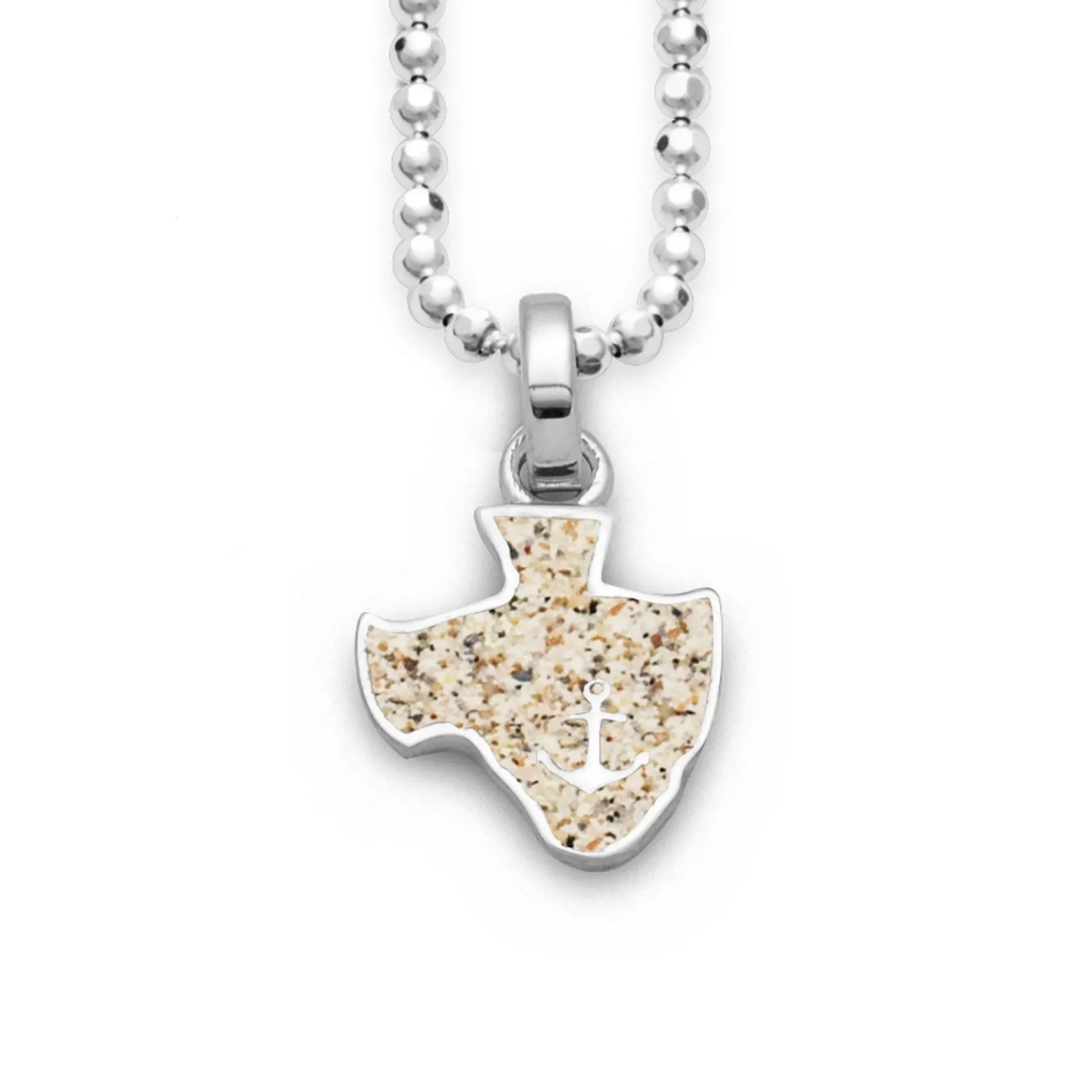 Wellen, Wind und Wattenmeer – der durch viele Sturmfluten entstandene Jadebusen ist eine der letzten offenen Meeresbuchten der Wattenmeerküste und fasziniert mit abwechslungsreicher Landschaft, sowie einmaligen Natur und Kulturschätzen.Als Erinnerung an schöne Urlaubsmomente, aber auch für alle die Meer und Strand lieben, oder ein maritimes Statement setzen möchten, ist dieses schöne Schmuckstück unverzichtbar.Der elegante Anhänger ist eine Hommage an diesen einzigartigen Küstenlebensraum und beeindruckt mit hochwertiger Verarbeitung, sowie durch die außergewöhnliche Materialkombination von feinem Strandsand und edlem, rhodinierten 925er Sterling Silber.In glanzvollem Design präsentiert sich der Anhänger in „Jadebusen“ – Silhouette, gefüllt mit echtem Strandsand und einer silbernen Ankerverzierung als Blickfang. Mit einem Ösendurchmesser von 5 mm lässt sich der zeitlose Anhänger mit verschiedenen Ketten kombinieren und ist somit ein toller Begleiter, der jedem Dekolleté eine umwerfende Ausstrahlung verleiht.
