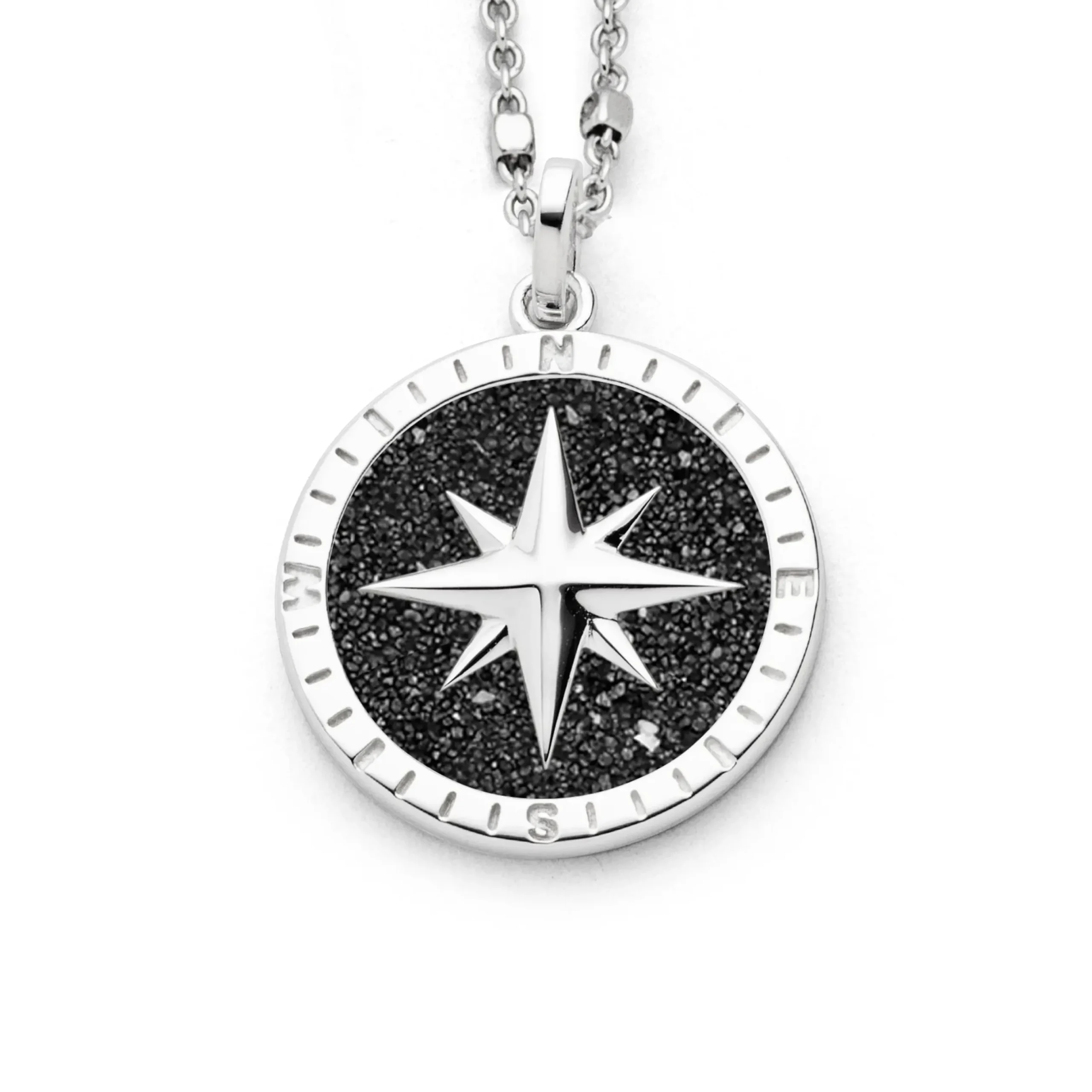Anhänger „Kompassrose 2.0“ mit Lavasand gefüllt, aus poliertem, rhodiniertem 925er Sterling-Silber