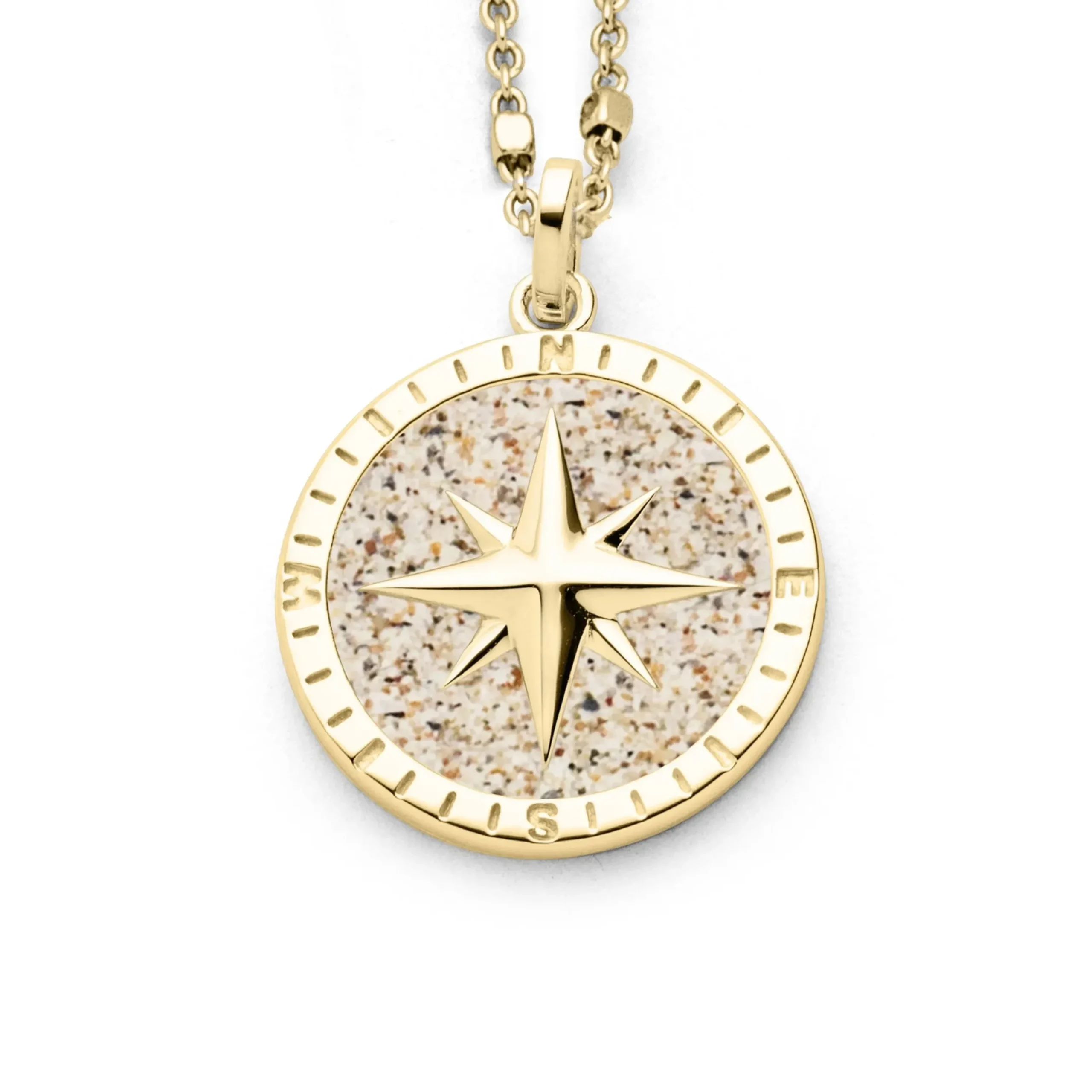 Anhänger „Kompassrose 2.0“ mit Strandsand gefüllt, aus poliertem, vergoldetem 925er Sterling-Silber