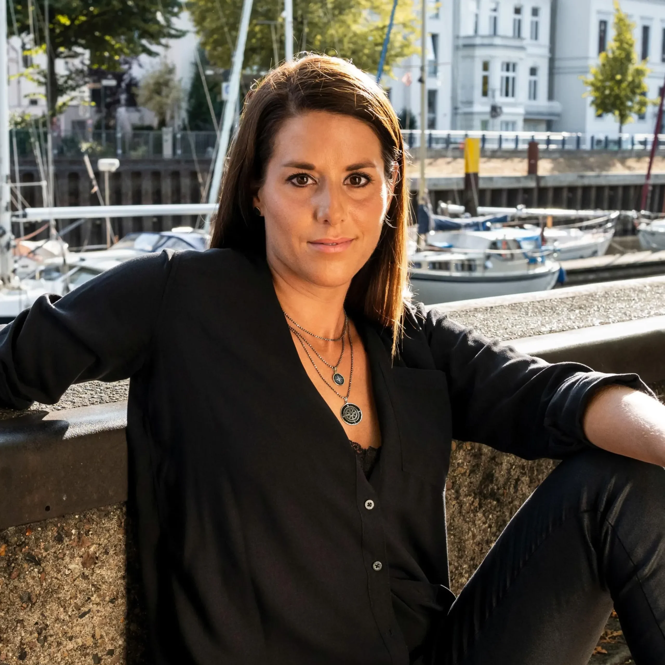 Großer, runder Anhänger mit einer Kompassrose und einer zarten Welle am unteren Rand, eingebettet in Lavasand. Die Rückseite ist leicht mattiert, gefasst ist der Anhänger in rhodiniertem 925er Sterling-Silber. Gut kombinierbar mit einer schwarz rhodinierten Kugelkette. Durch die Rhodinierung ist das Schmuckstück anlaufgeschützt.