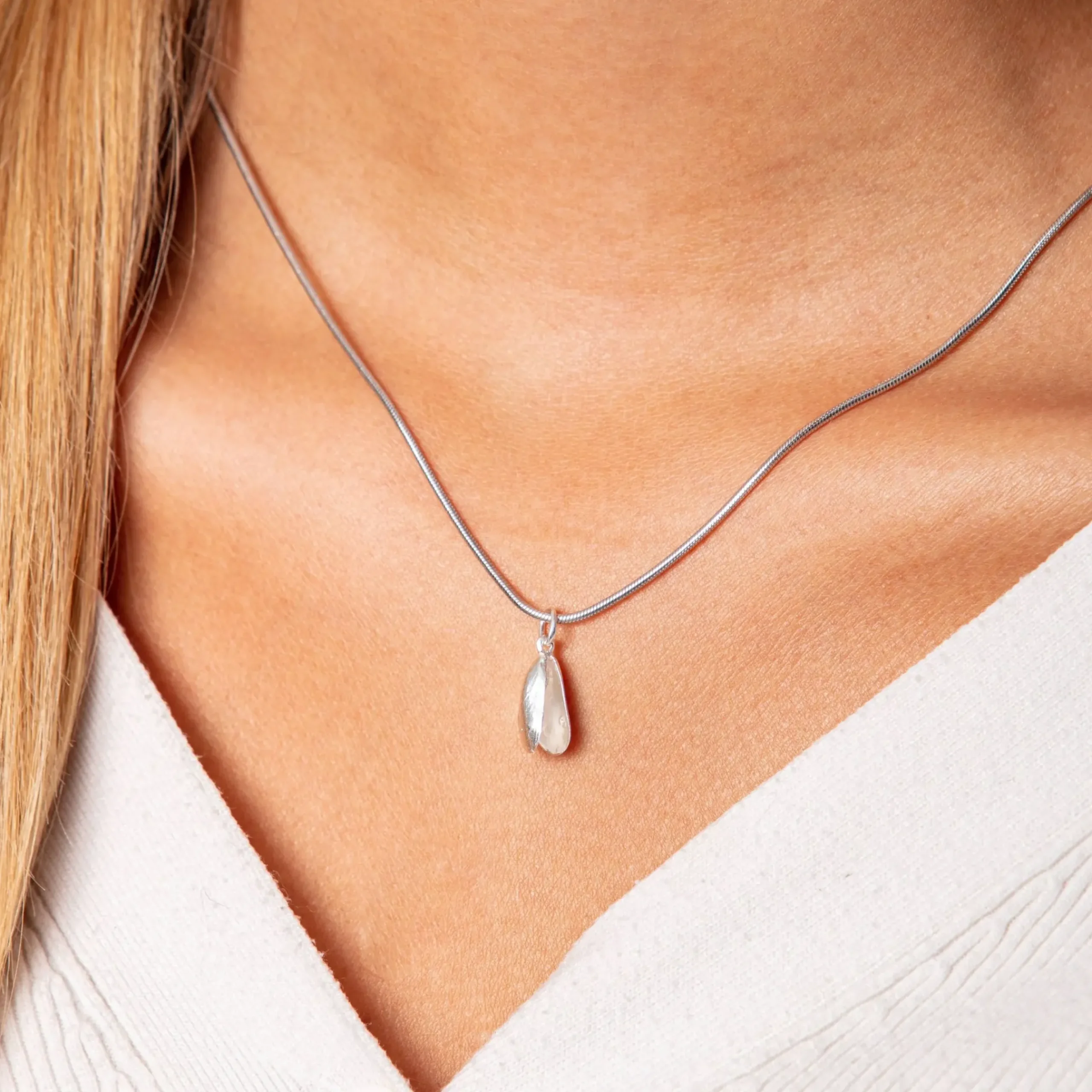 Anhänger „Miesmuschel“ klein, anlaufgeschütztes 925er Sterlingsilber.