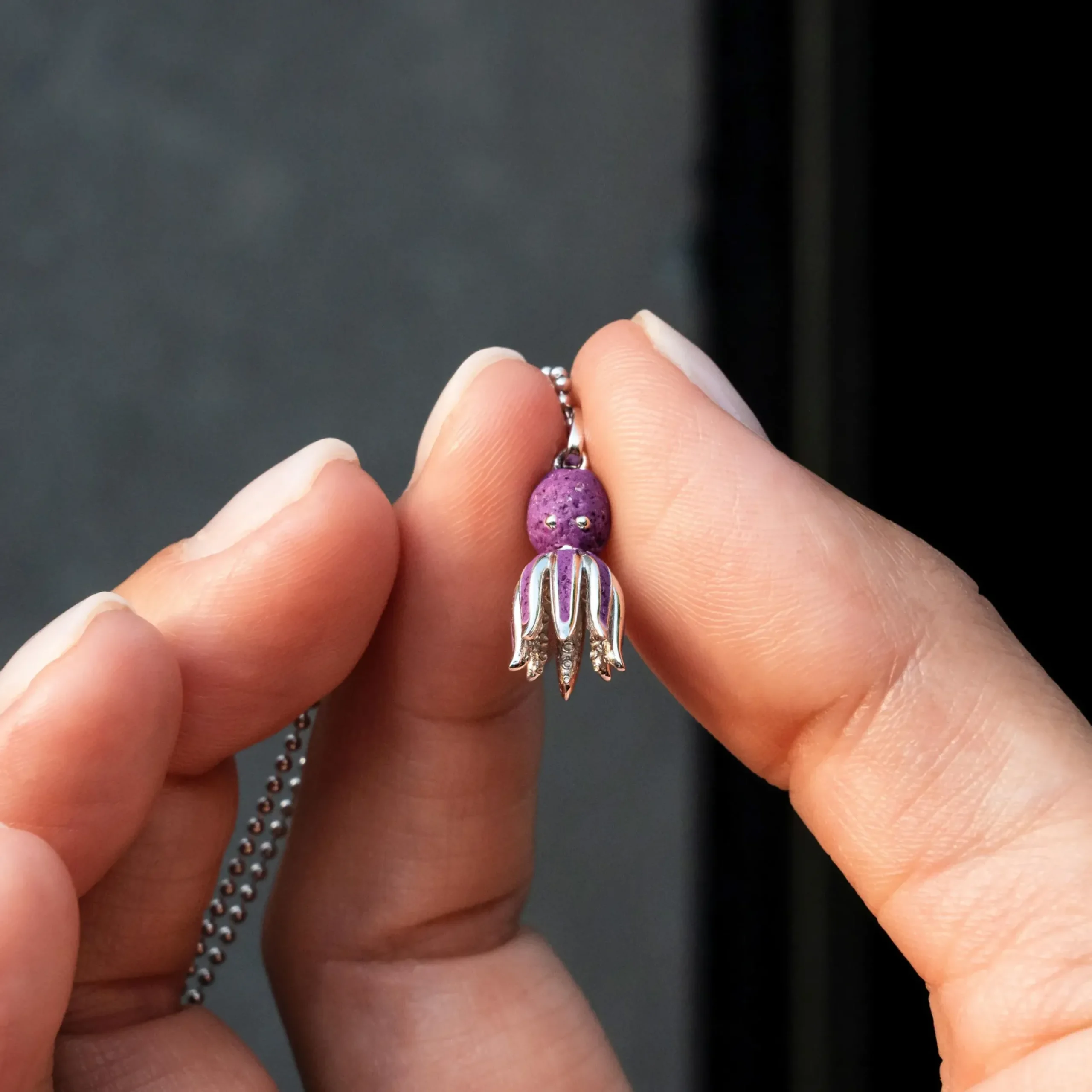 Echte Sehnsucht: Anhänger in Form eines Oktopus, gefüllt mit Korallengranulat, alles aus poliertem und rhodiniertem 925er Sterling-Silber