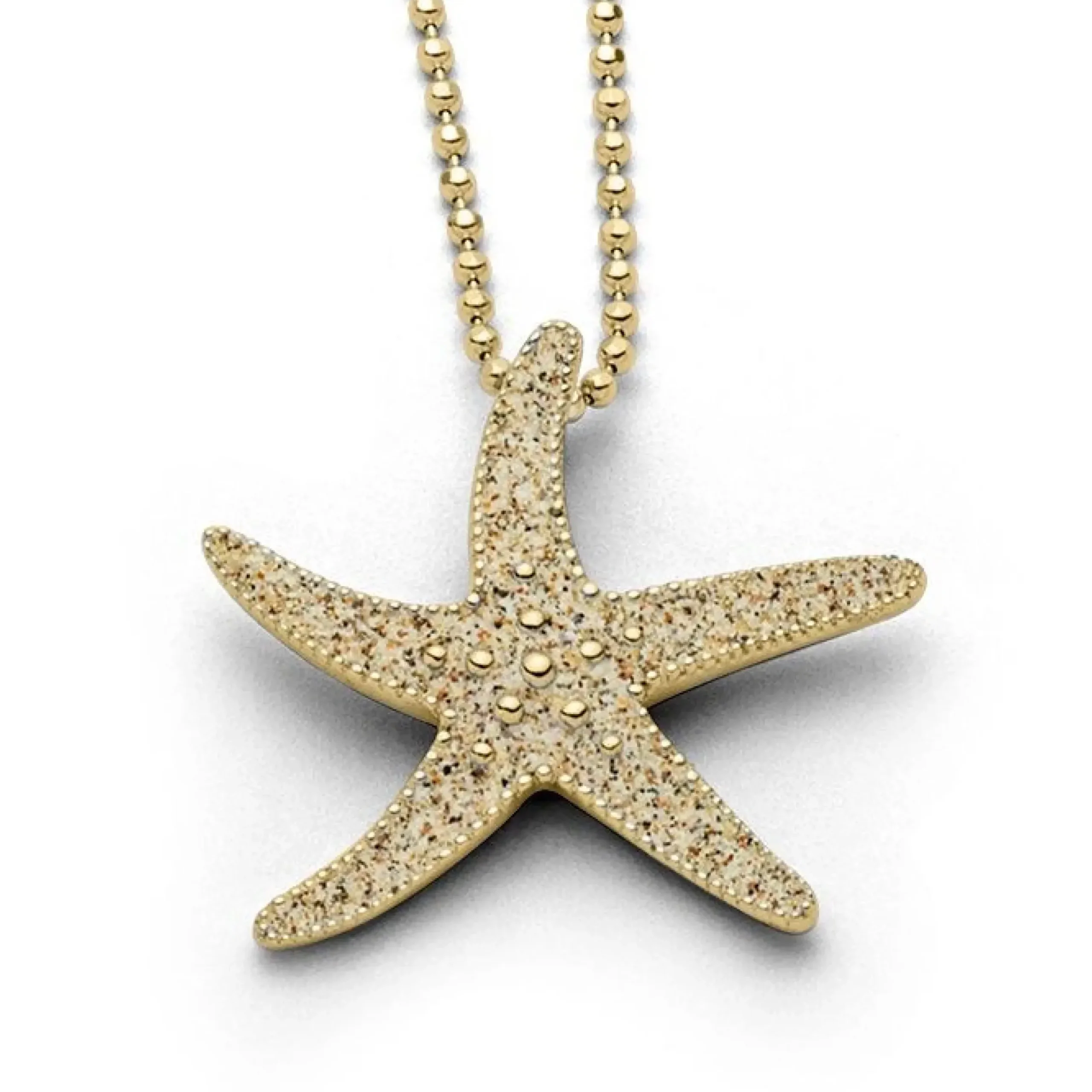 Anhänger „Seestern/Strandsand“ mit auf der Rückseite angebrachter Öse, gefasst in vergoldetem 925er Sterling-Silber