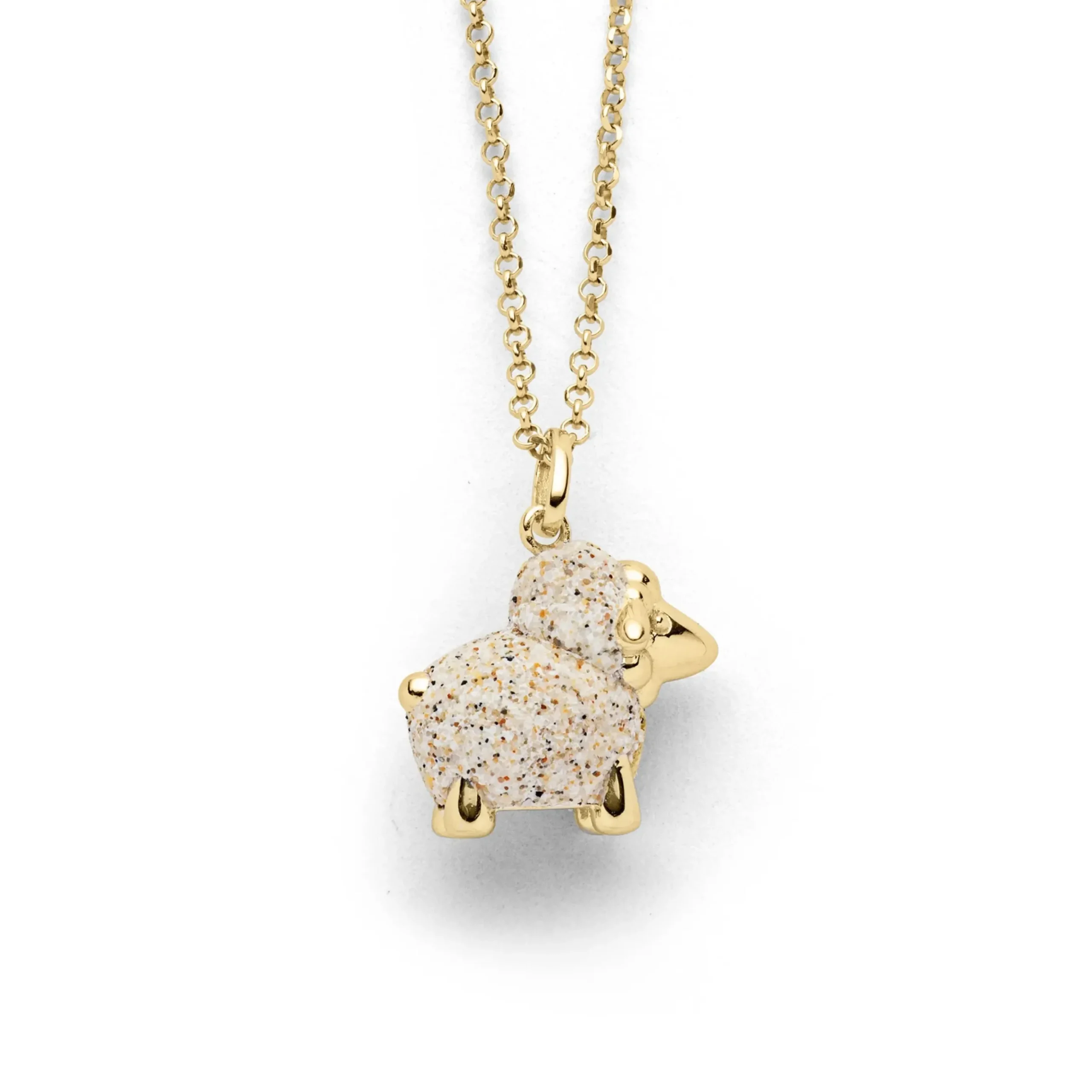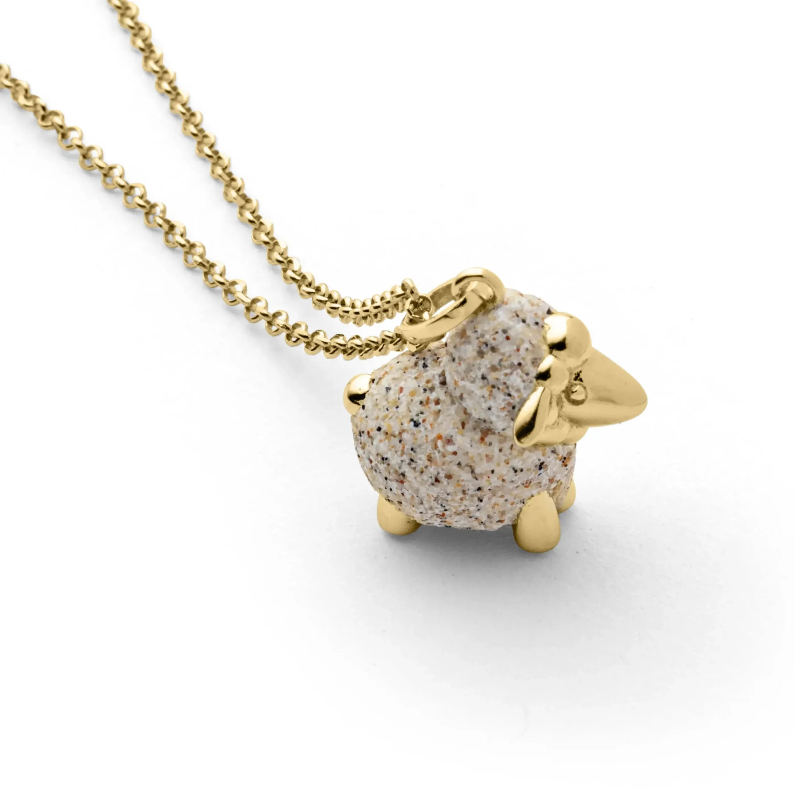 Anhänger „Schaf“ mit Strandsand gefüllt, aus poliertem, vergoldetem 925er Sterling-Silber