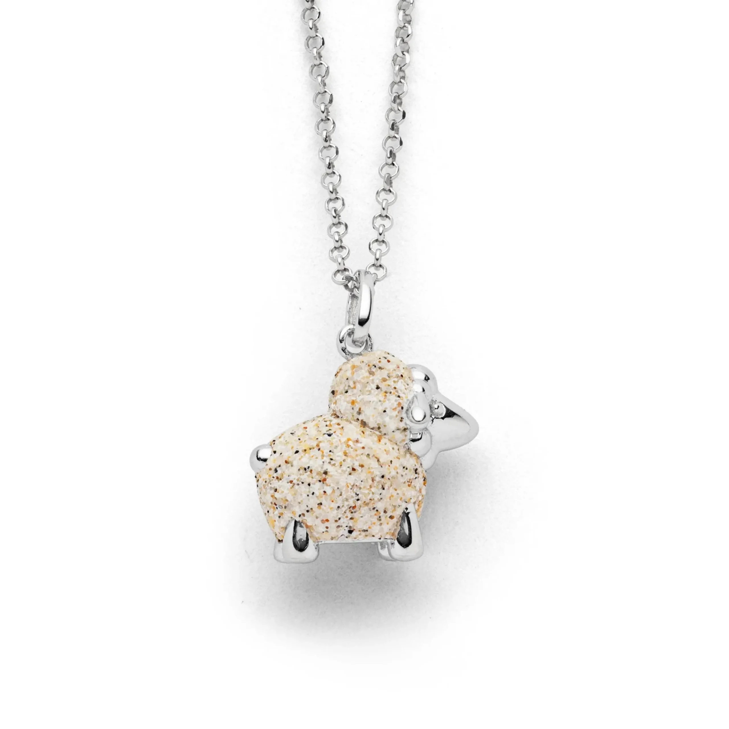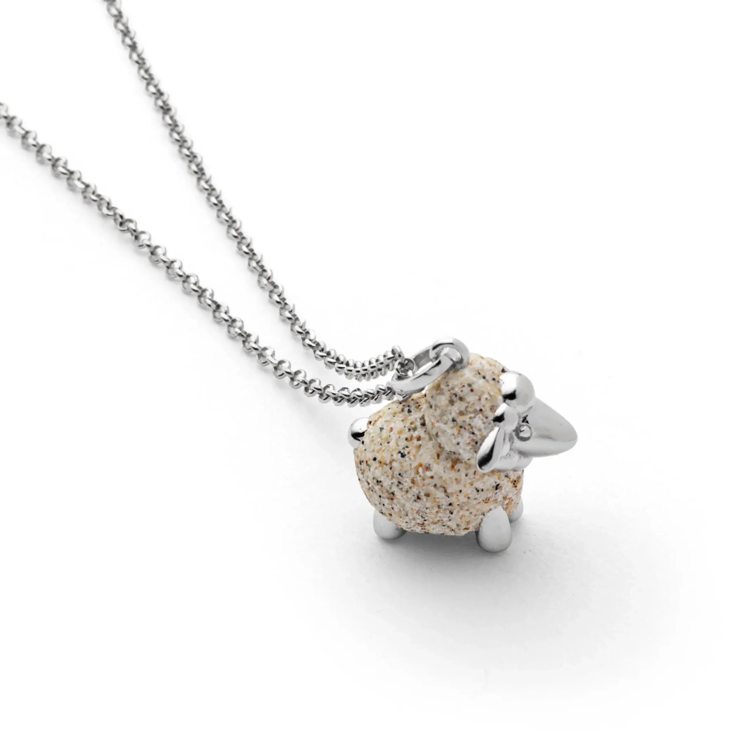 Anhänger „Schaf“ mit Strandsand gefüllt, aus poliertem, rhodiniertem 925er Sterling-Silber