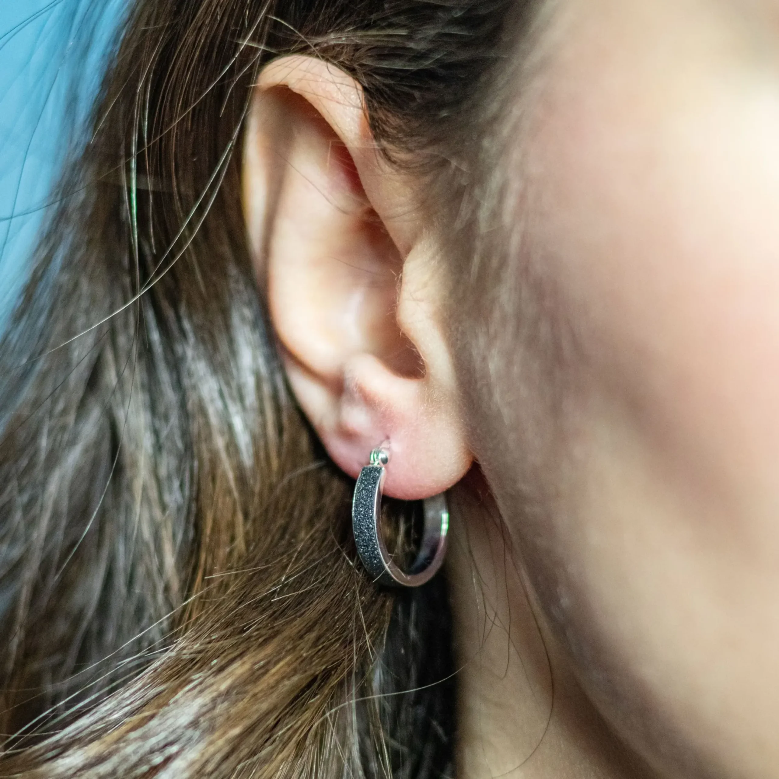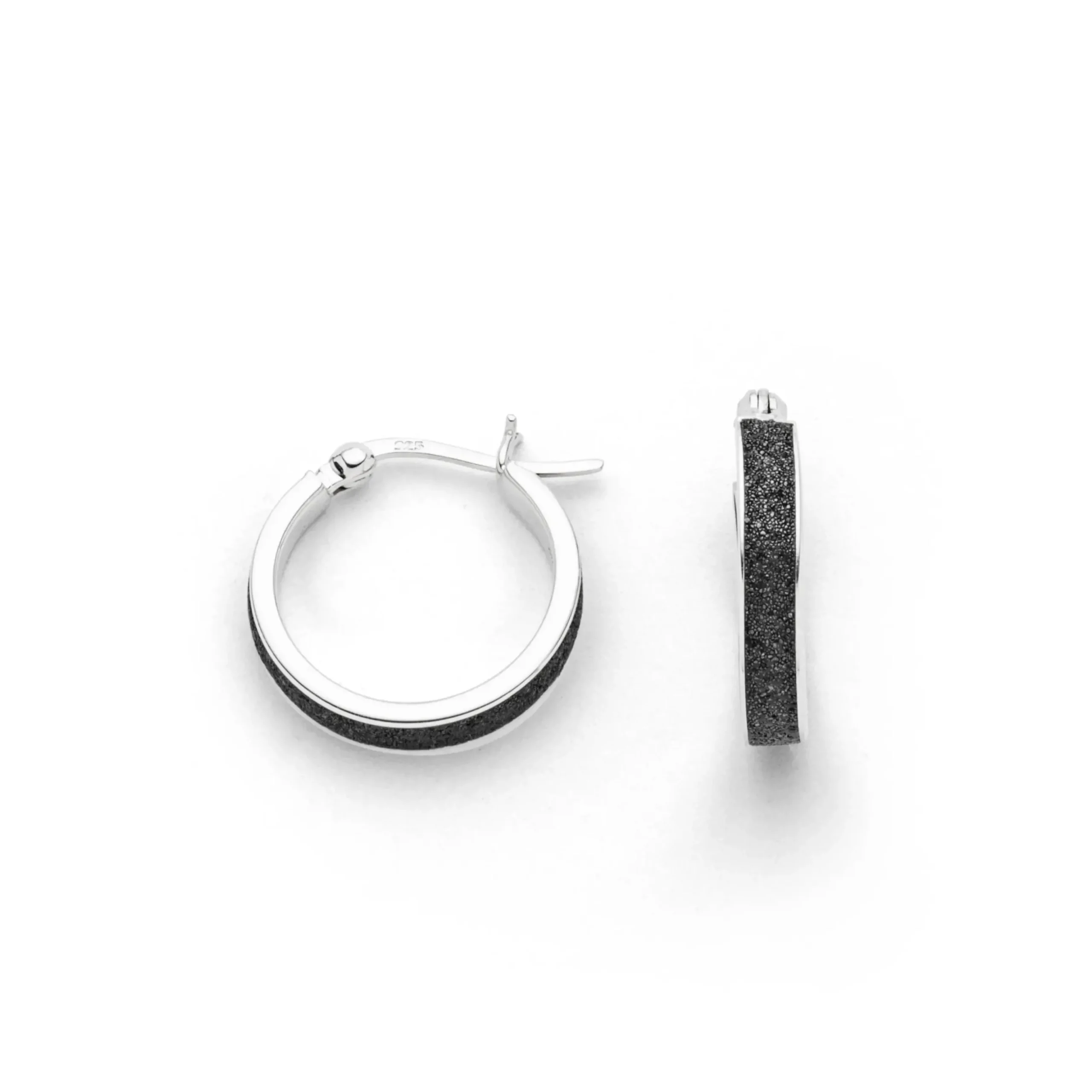 Creole rund 18,5 mm gefüllt mit Lavasand, gefaßt in rhodiniertem 925er Sterlingsilber.