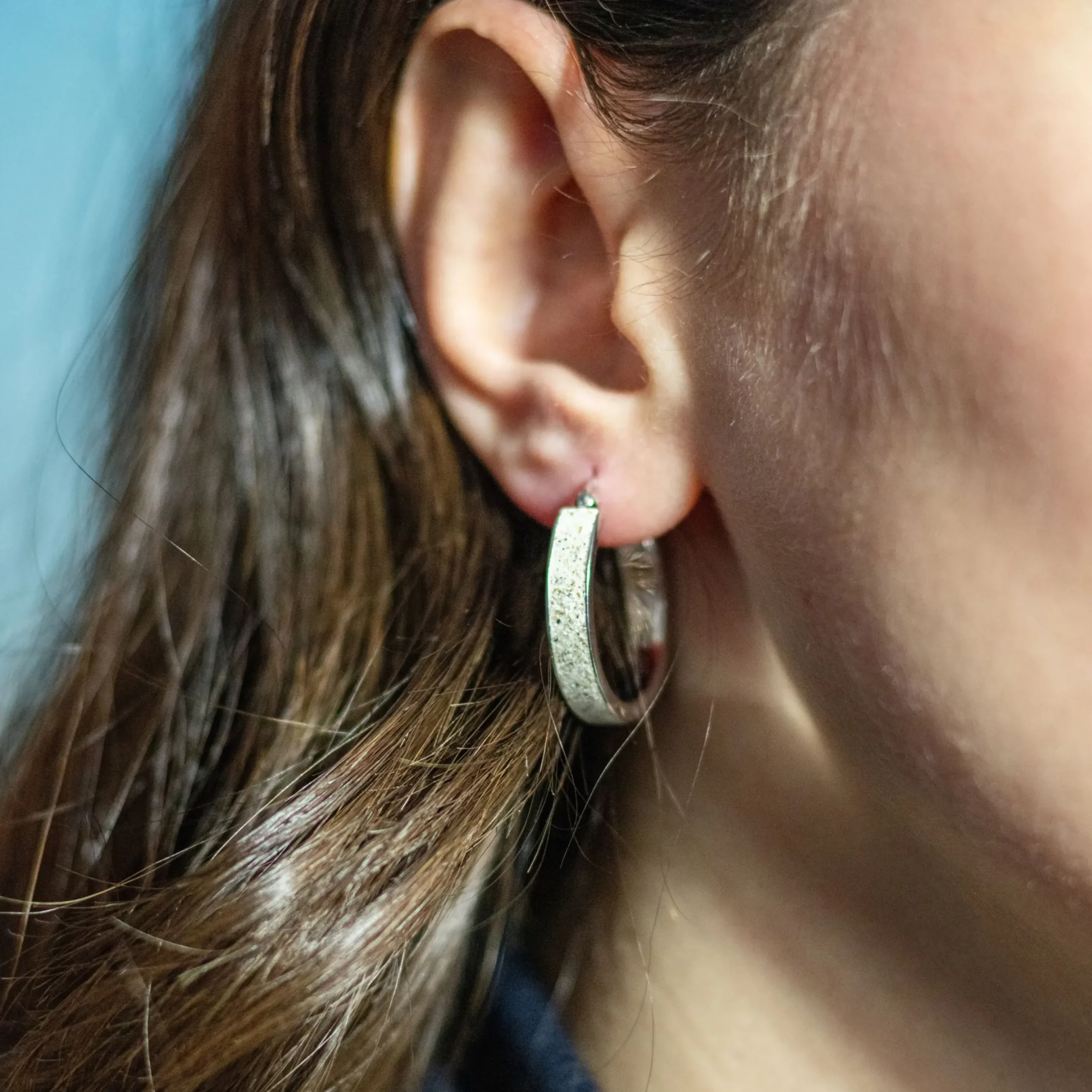 Creole rund 25,5 mm gefüllt mit Strandsand, gefaßt in rhodiniertem 925er Sterlingsilber.