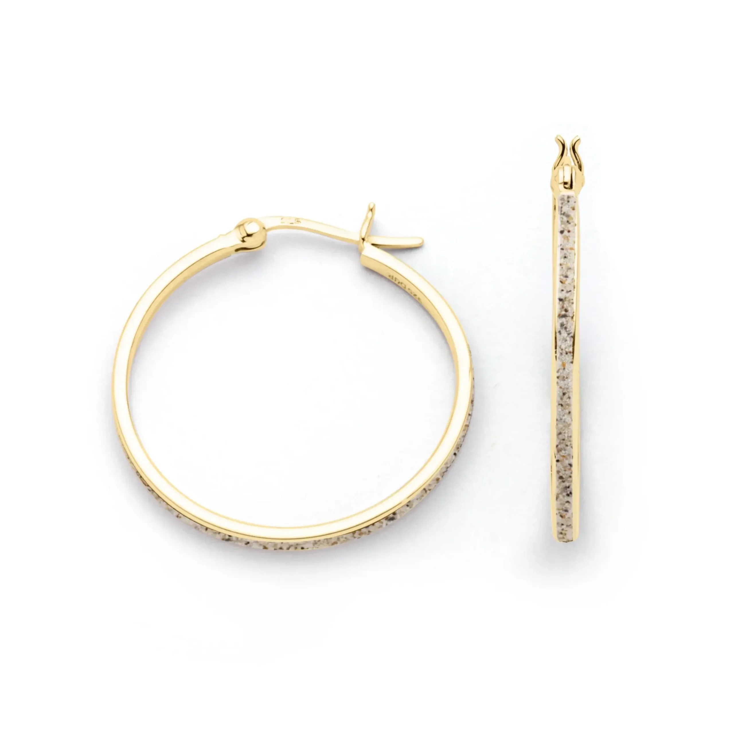 Creole rund 30 mm gefüllt mit Strandsand, gefaßt in vergoldetem 925er Sterlingsilber.