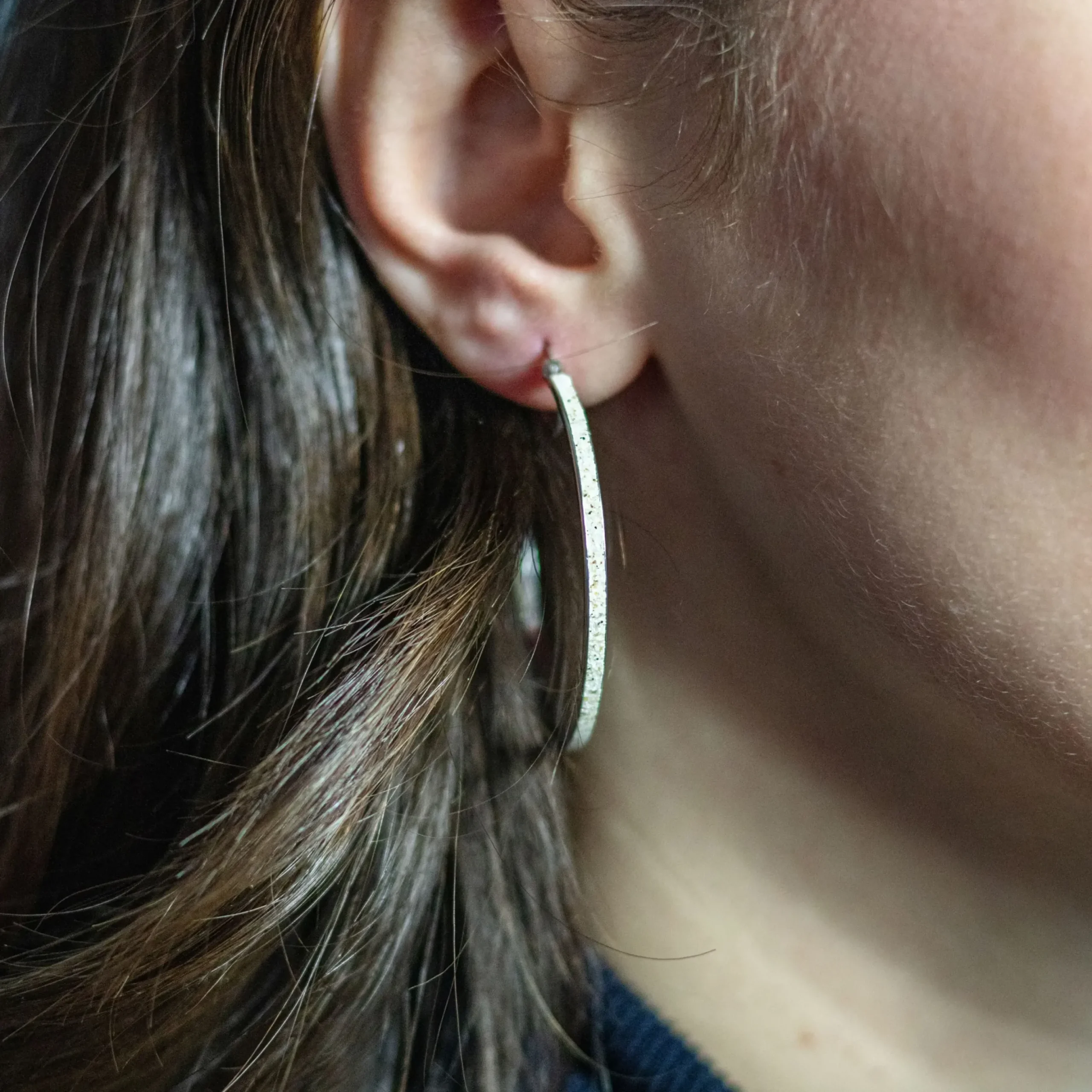 Creole rund 42,3 mm gefüllt mit Strandsand, gefaßt in rhodiniertem 925er Sterlingsilber.