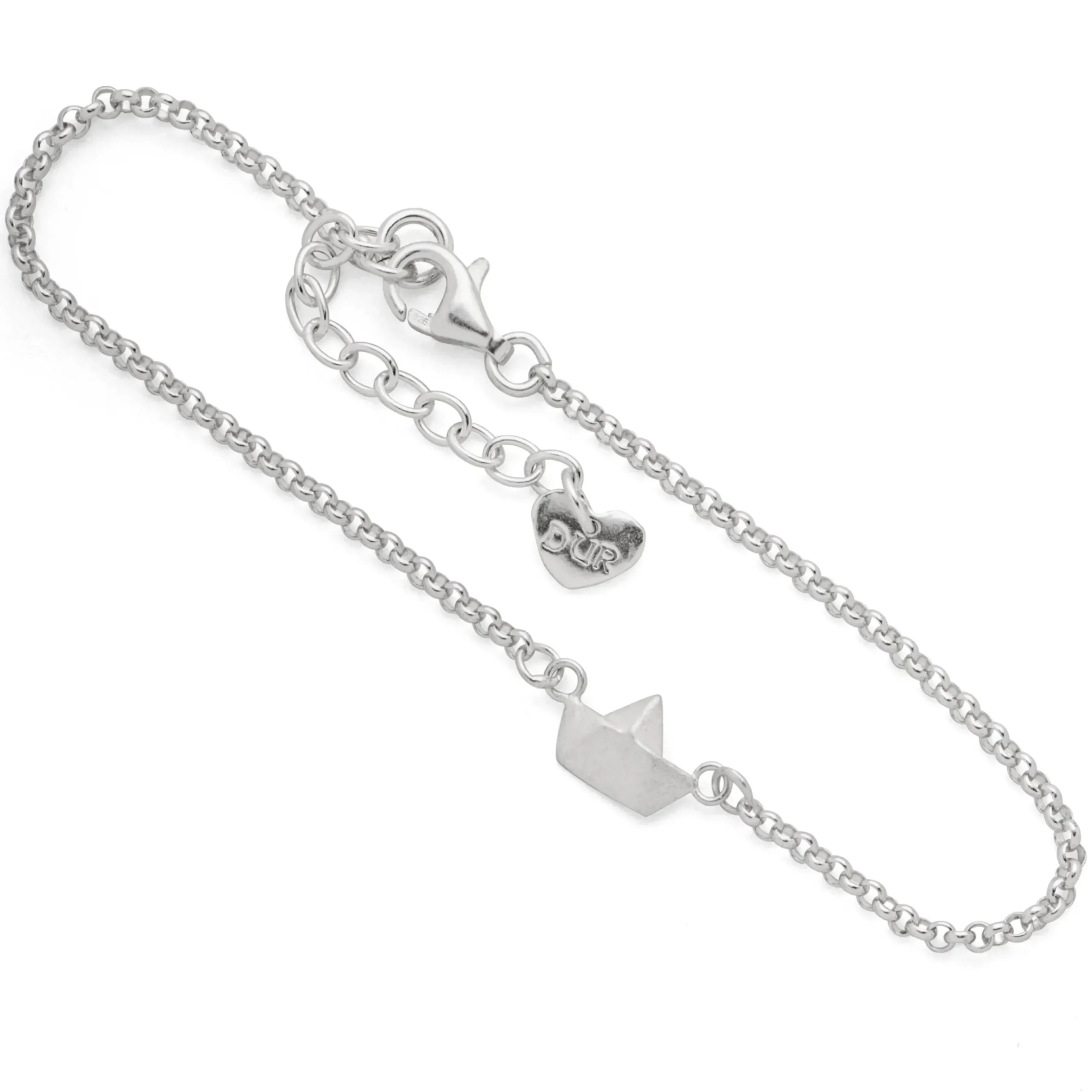 Feines Erbsarmband mit einem mattierten Boot als Mittelteil, aus 925er Sterling-Silber, ca. 16,5 cm plus 3 cm Verlängerung, e-coating-anlaufgeschützt