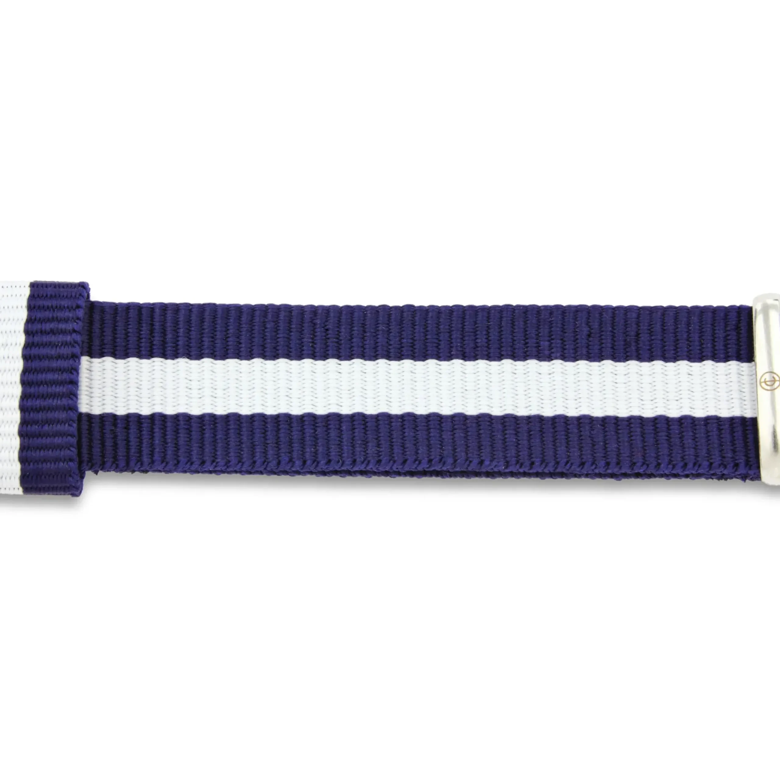 Nylonband 18 mm breit in den Farben Blau/Weiß/Blau gestreift, verstellbar auf 23 cm