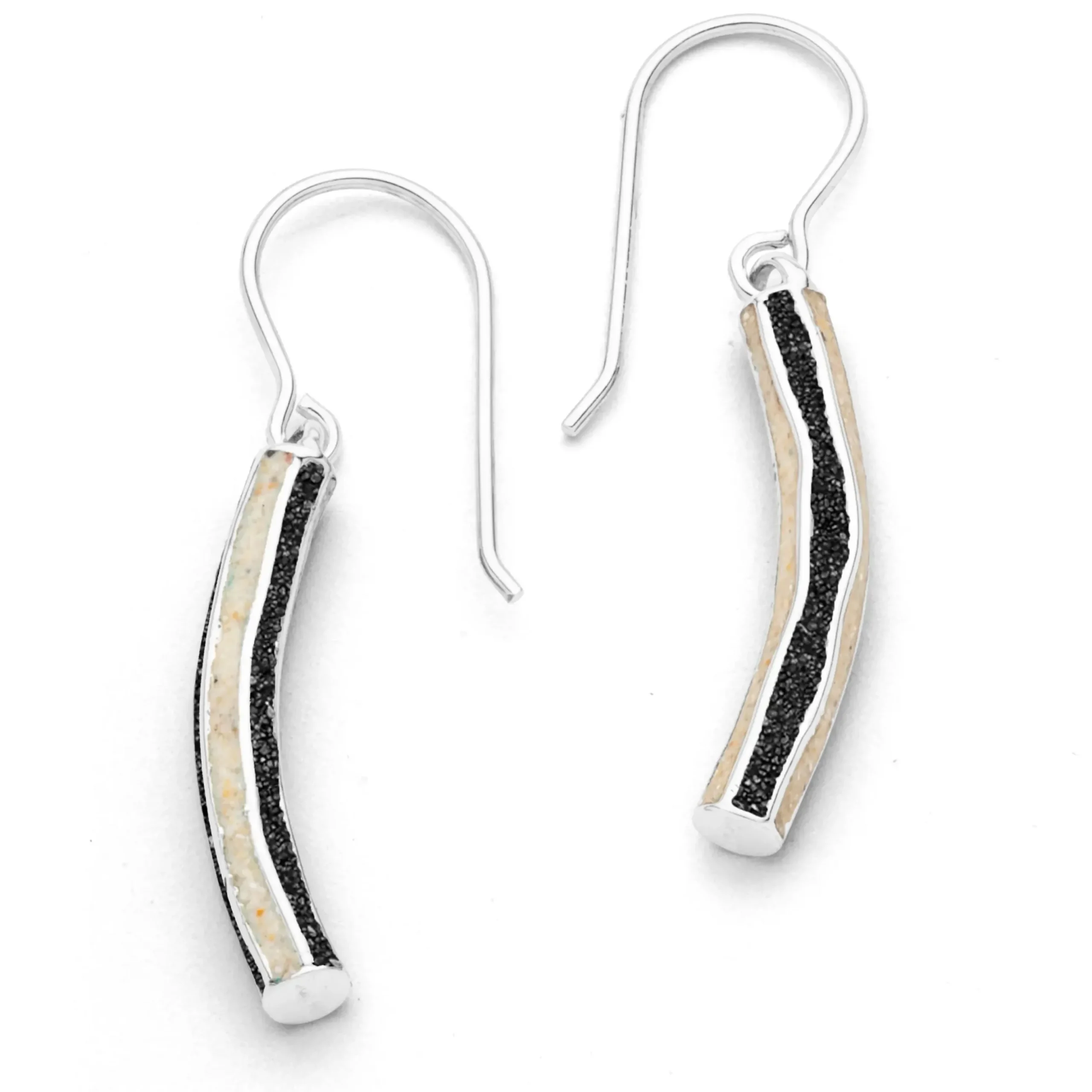 Ohrhänger „Wellenspiel“, handgefertigt, mit leicht geschwungenen Elementen, wechselweise gefüllt mit Strandsand und Lavasand, alles aus rhodiniertem 925er Sterlingsilber