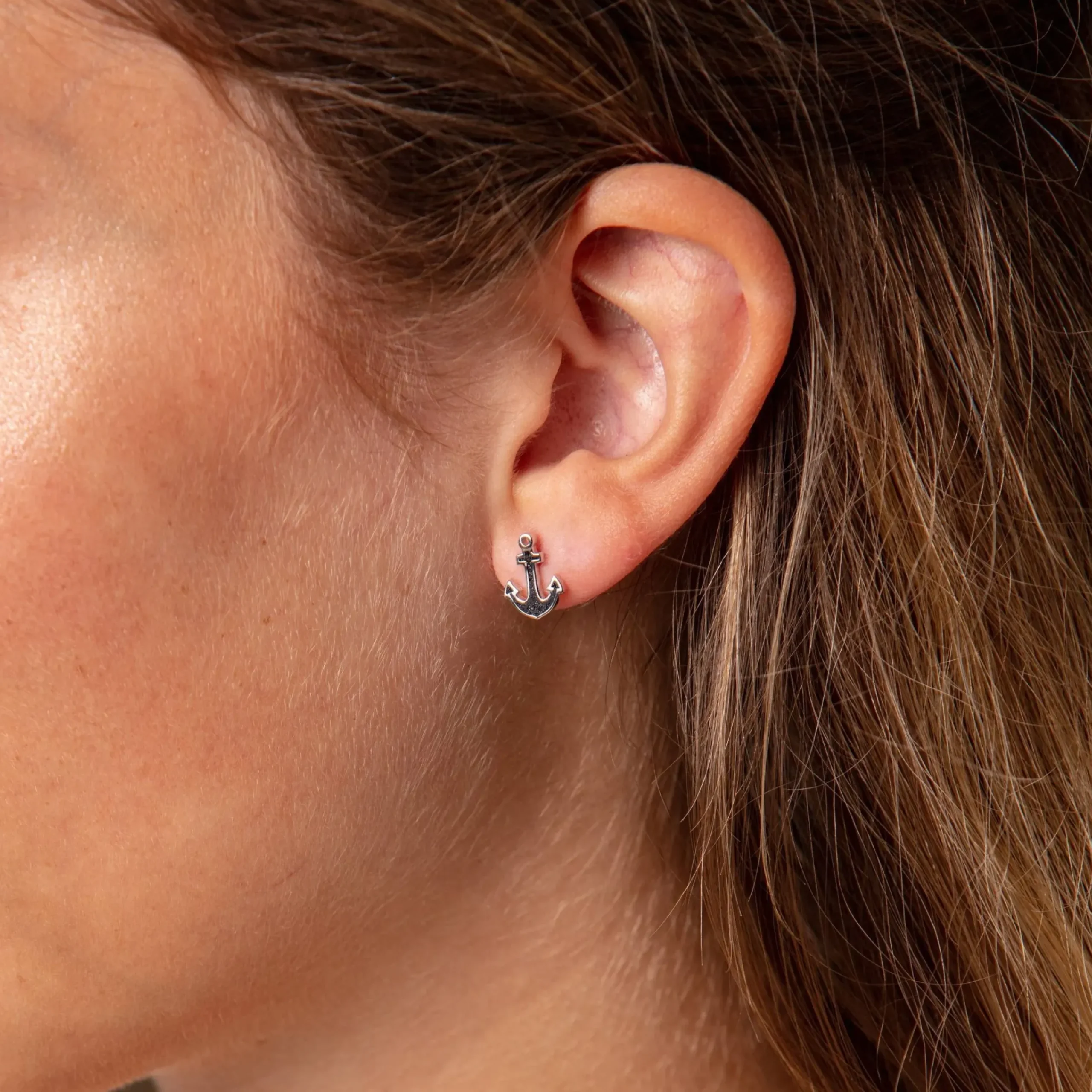 Filigraner Ohrstecker „Anker“ gefüllt mit Lavasand und gefaßt in poliertem und rhodiniertem 925er Sterlingsilber.Durch die Rhodinierung ist das Schmuckstück anlaufgeschützt.