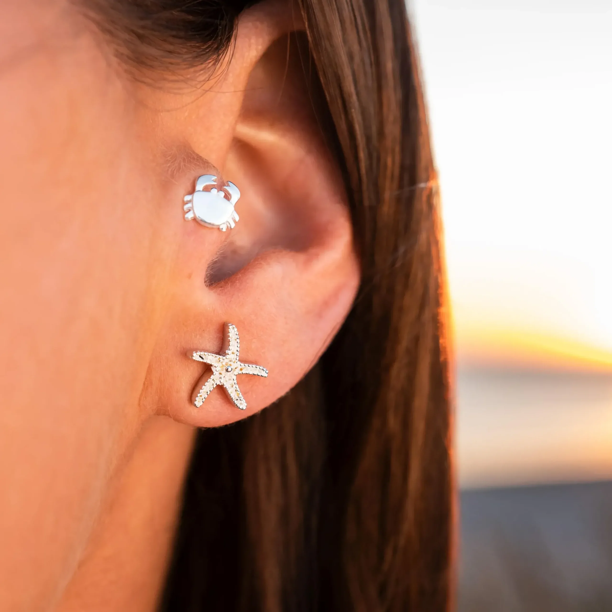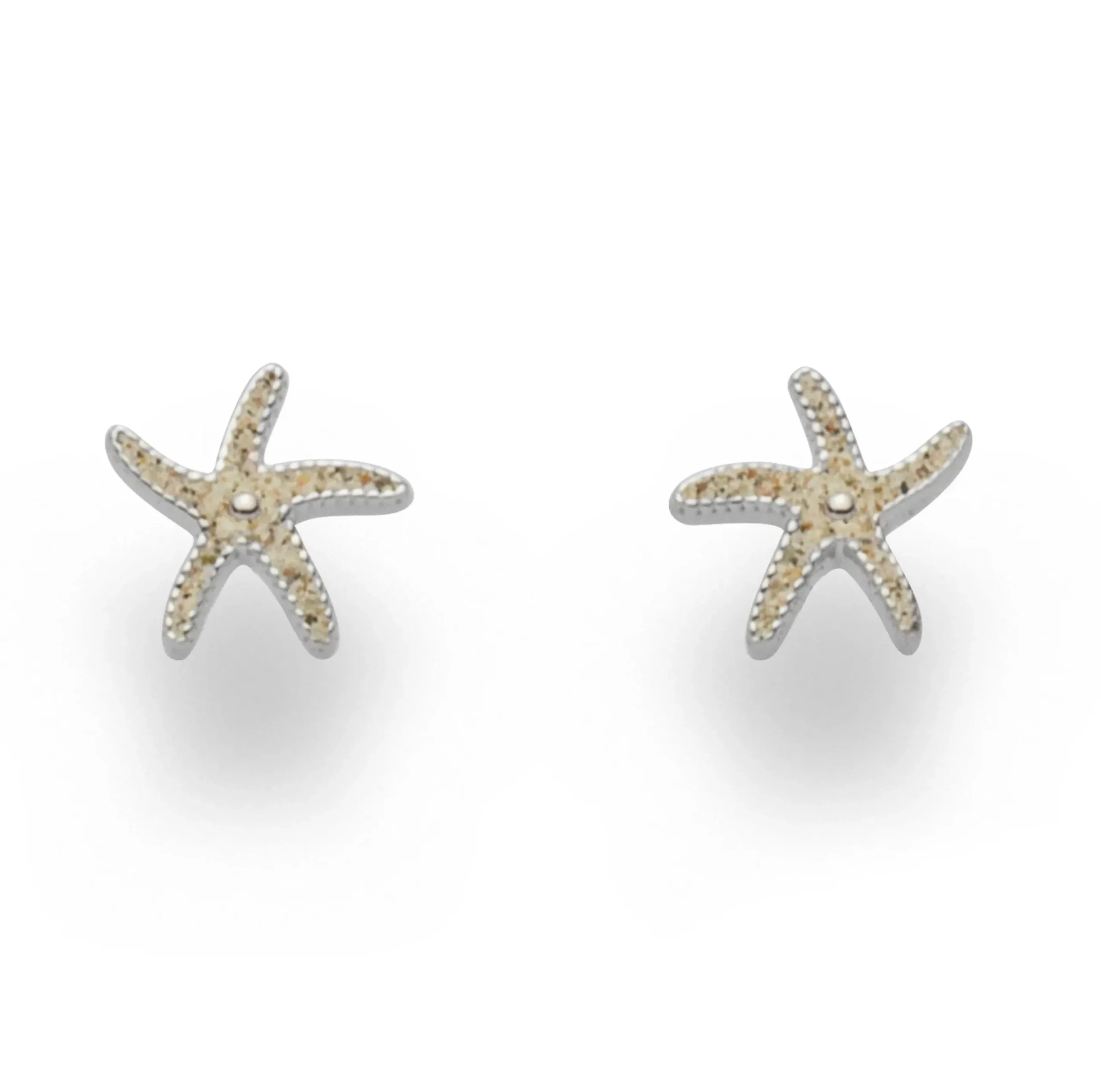 Sonne, Strand und Meer! Diese außergewöhnliche Seestern-Ohrstecker wecken Urlaubsgefühle und sind ein absolutes „Must-Have“ für alle, die ein maritimes Statement setzen möchten.Die Ohrstecker in Form eines Seesterns verzaubern mit klarem, glänzendem Design und einer Füllung aus echtem Strandsand, sowie einem kleinen, mittig gesetzten Silberkügelchen als Verzierung.Durch die außergewöhnliche Materialkombination von feinem Strandsand und hochwertigem, rhodiniertem 925er Sterlingsilber (anlaufgeschützt) sind diese Ohrstecker ein echter Blickfang, die jedes Outfit aufwerten.