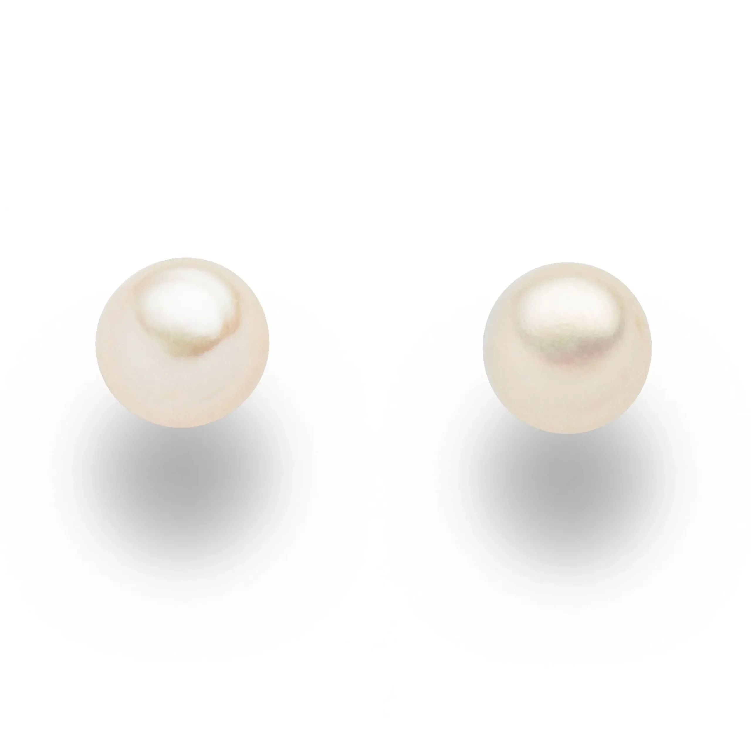 Weißer Perlenstecker mit einem Durchmesser von 6 -7 mm auf einer Fassung aus 925er Sterling-Silber