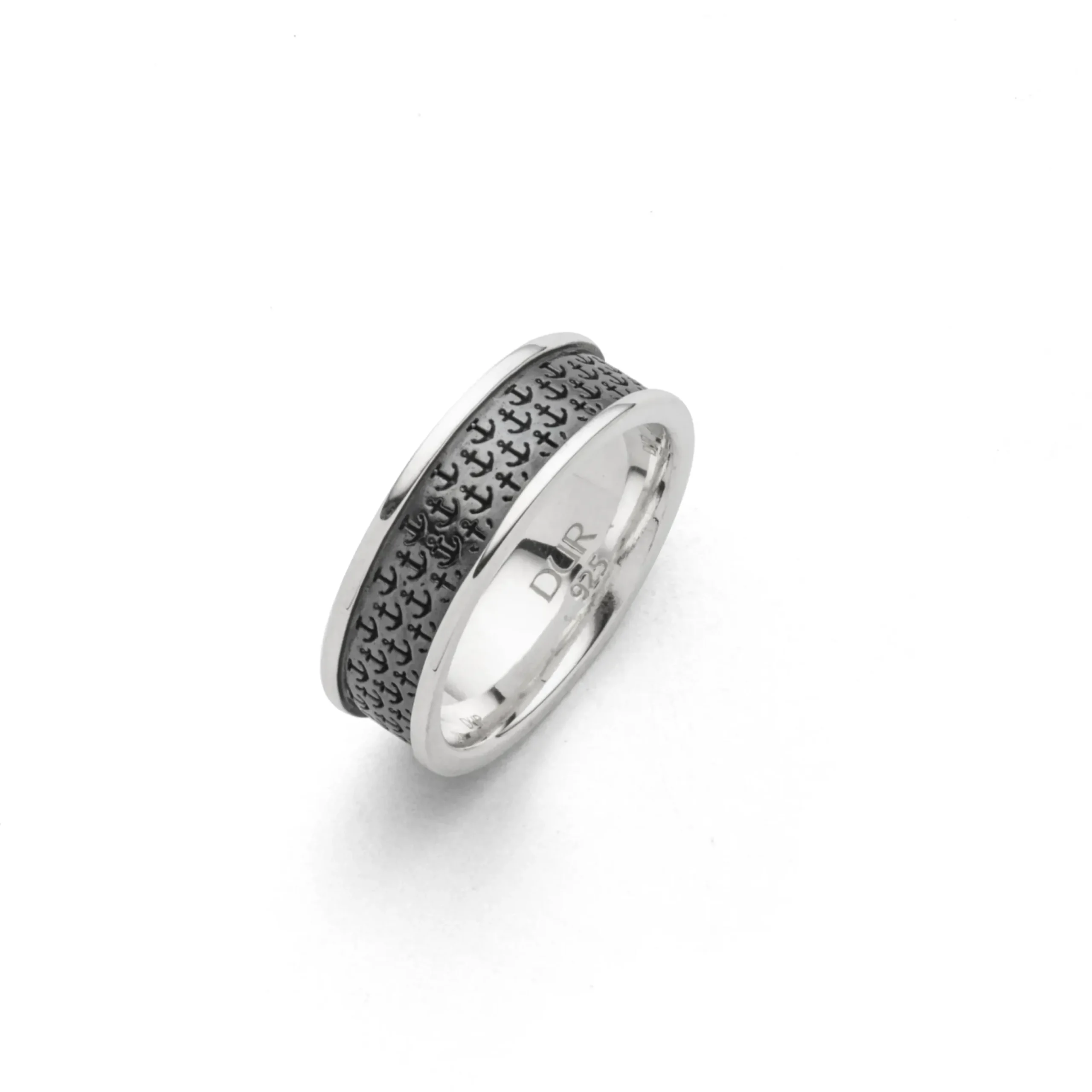 Bandring „Ankerplatz“, 7 mm mit kleinen gelaserten, oxidierten Anker-Icons, alles aus 925er Sterling-Silber.