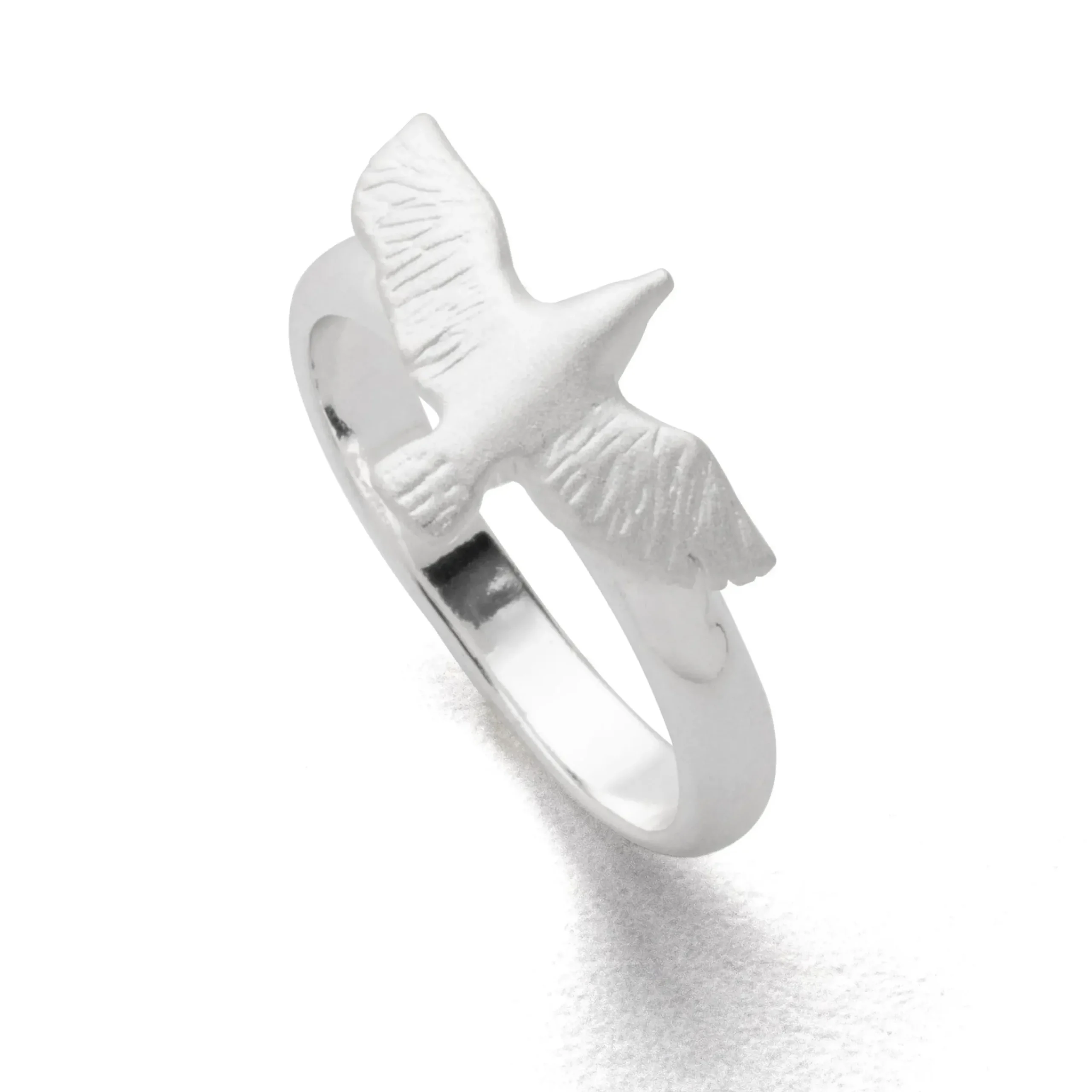 Zierlicher Ring mit einer Möwe aus poliertem und mattiertem 925er Sterling-Silber