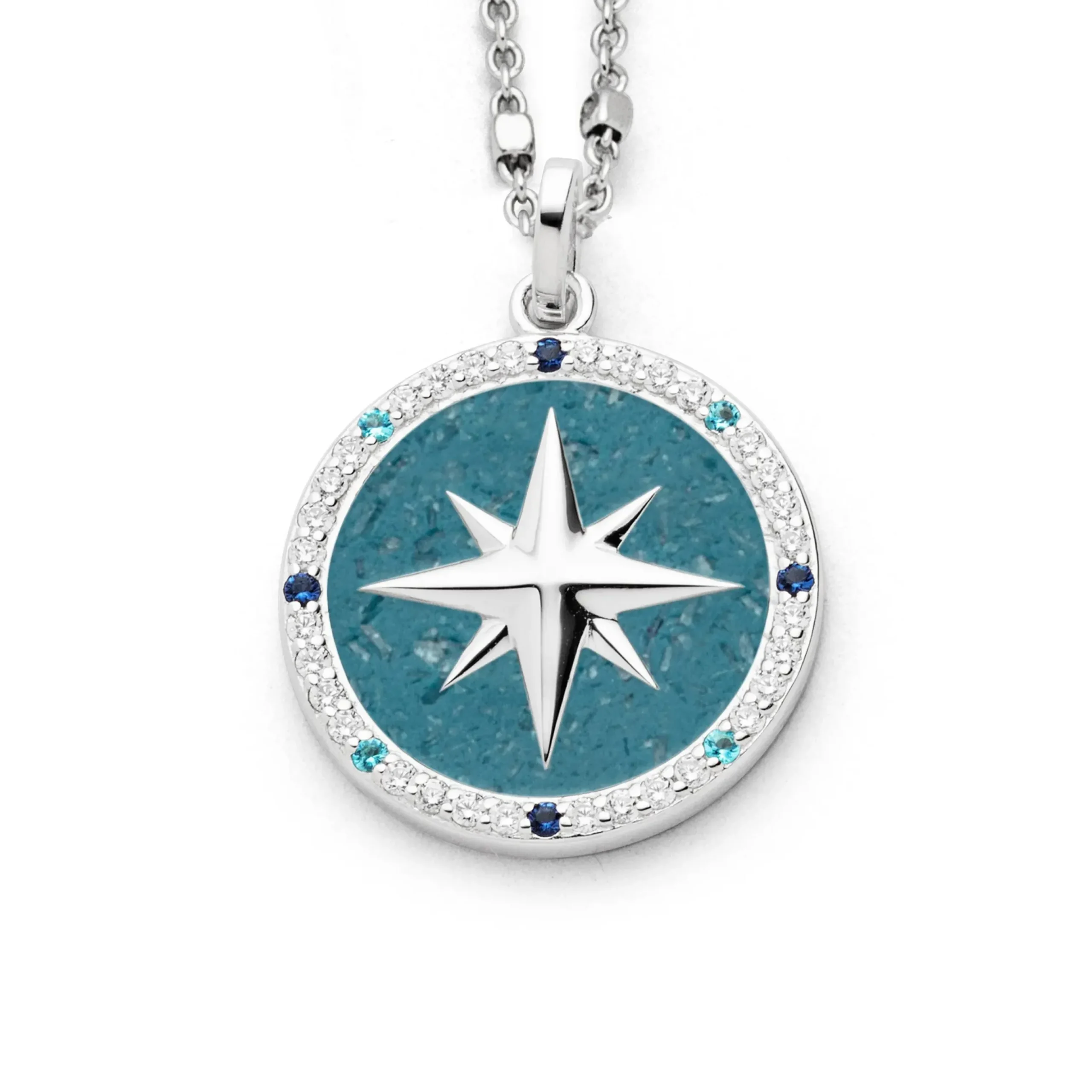Be the first to review “Anhänger „Kompassrose 2.0“ Zirkonia und blauem Steinsand”