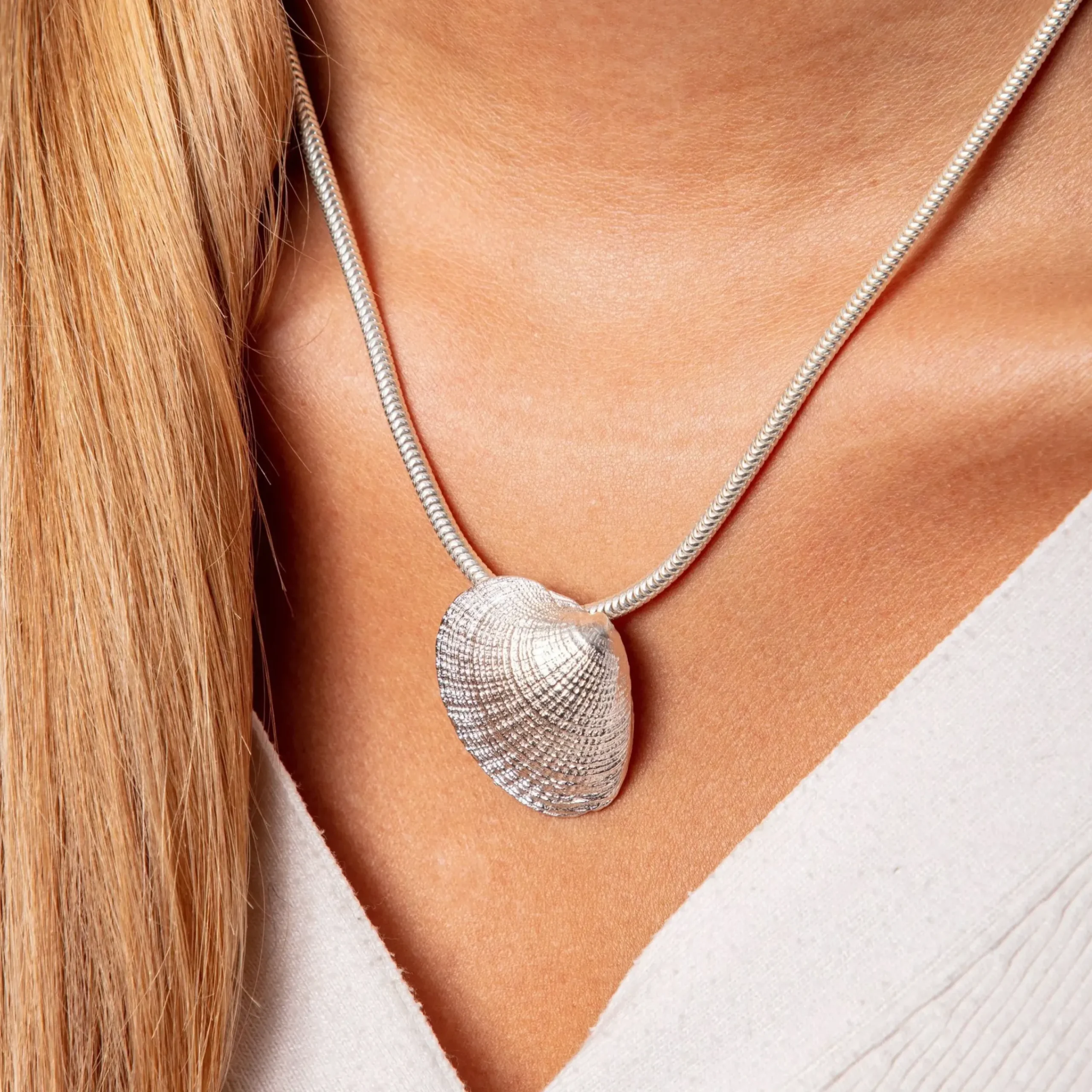 Anhänger „Herzmuschel“ mittel, aus 925er Sterling-Silber mit auf der Rückseite angebrachter Öse