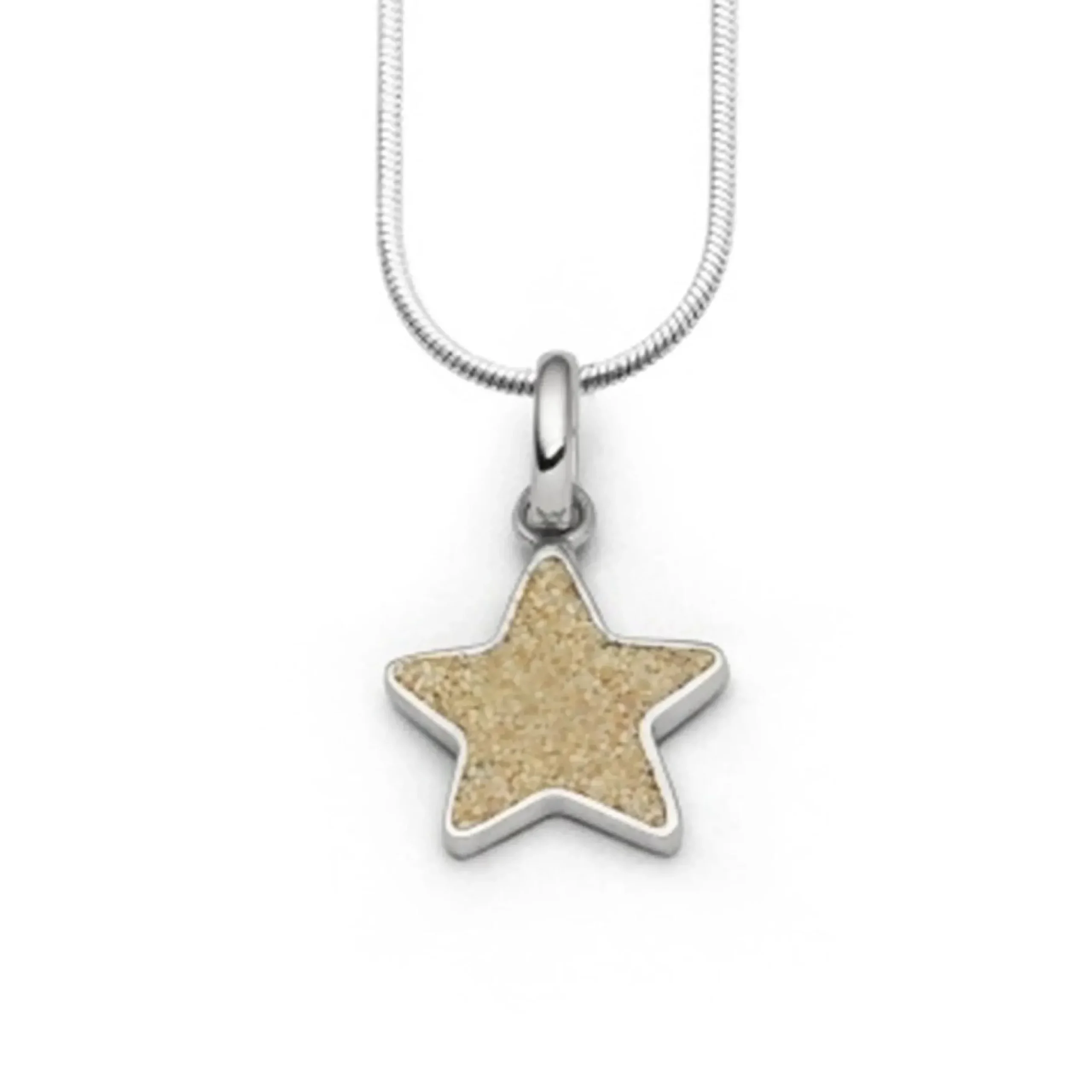 Anhänger „Sandseestern“ klein mit Strandsand gefüllt , gefasst in rhodiniertem 925er Sterling-Silber