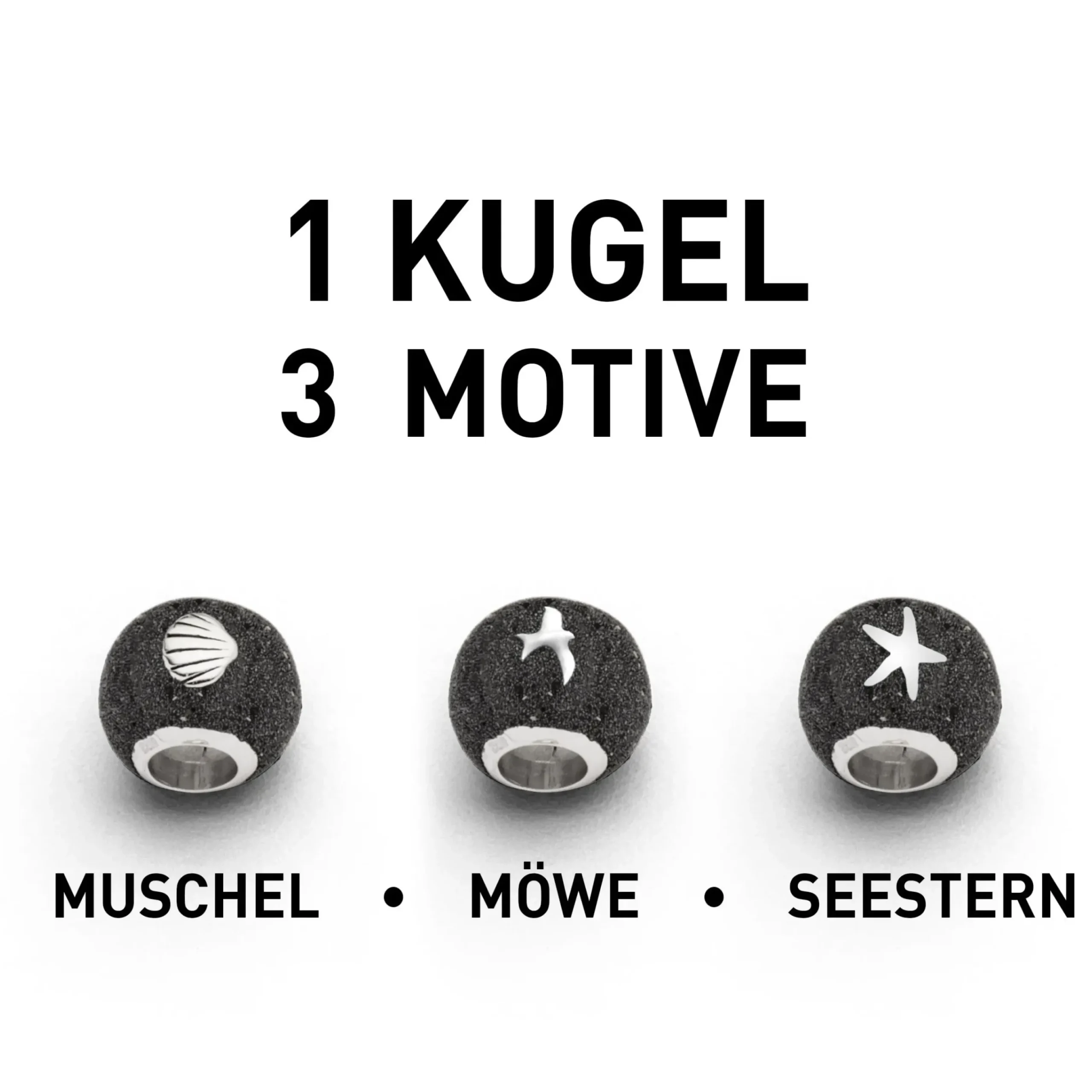 Diese Lavasandkugel verzaubert mit klarem, glänzenden Design und maritimen Motiven (Muschel, Seestern, Möwe), die das Gefühl von Urlaub vermitteln.Durch die edle Materialkombination aus glitzerndem Lavasand und hochwertigem 925er Sterlingsilber ist dieser Anhänger ein echter Blickfang, der jedes Outfit aufwertet. Einzigartige, glanzvolle und aussagekräftige Anhänger, die jedem Schmuckstück eine individuelle Note verleihen – das sind Beads. Die modernen Anhänger zeichnen sich durch ihre außergewöhnliche Kombination von feinsten Naturmaterialien mit hochwertigem, rhodinierten 925er Sterling Silber aus und erstrahlen in verschiedenen Designs mit unterschiedlichen Motiven.Die hohe symbolische Aussagekraft der verschiedenen Motive unterstreicht Ihre Persönlichkeit und macht den Anhänger zu einem idealen Begleiter für Ihren Alltag.Mit einem Innendurchmesser von 5 mm sind die Beads mit zahlreichen Halsketten oder gängigen Sammelarmbändern kombinierbar. Somit können Sie selbst Ihr individuelles Schmuckstück gestalten.