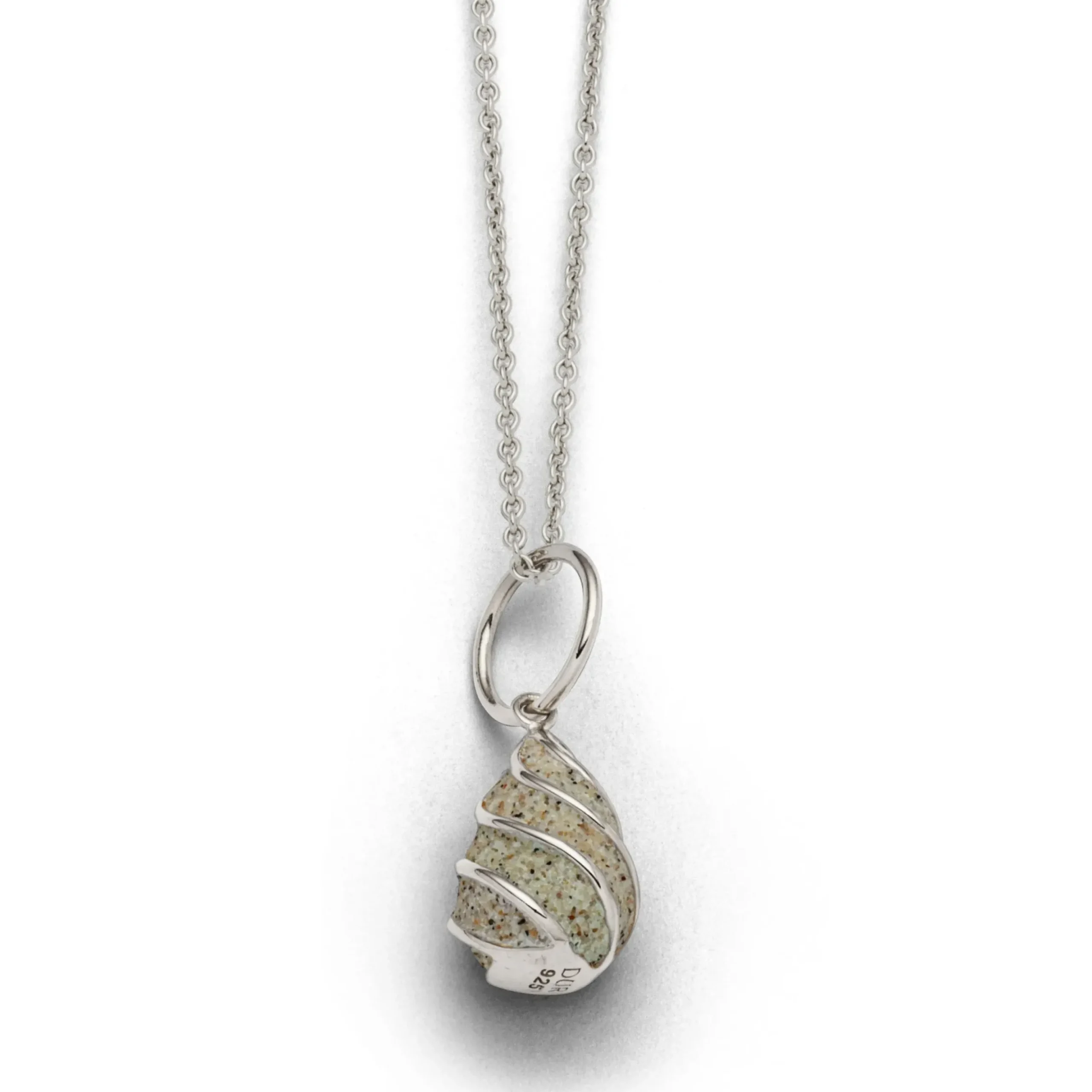 Anhänger „Bali“ Tropfenanhänger mit Strandsand gefüllt, gefasst in rhodiniertem 925er Sterlingsilber.