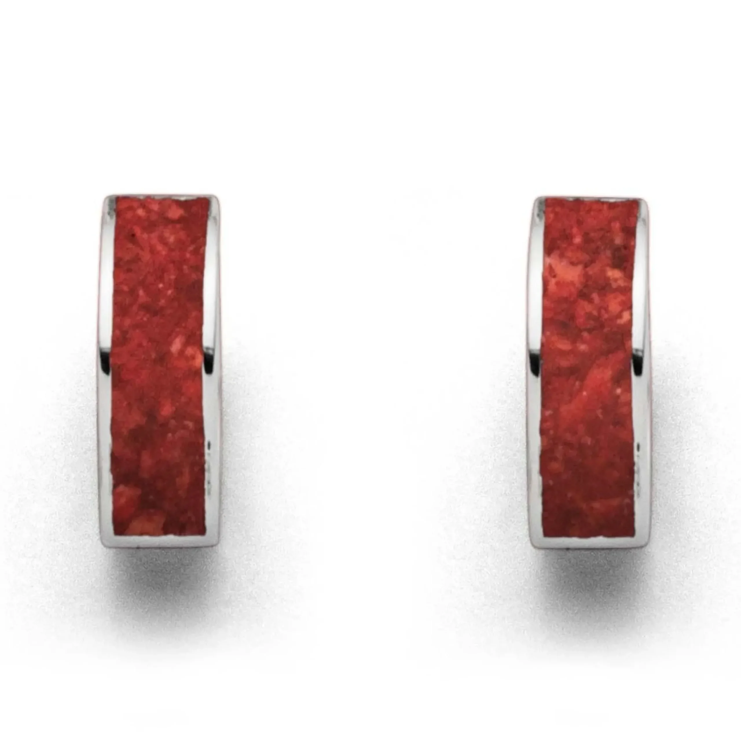 Klappcreole „Marina breit“ mit Koralle gefüllt, gefaßt in rhodiniertem 925er Sterlingsilber.