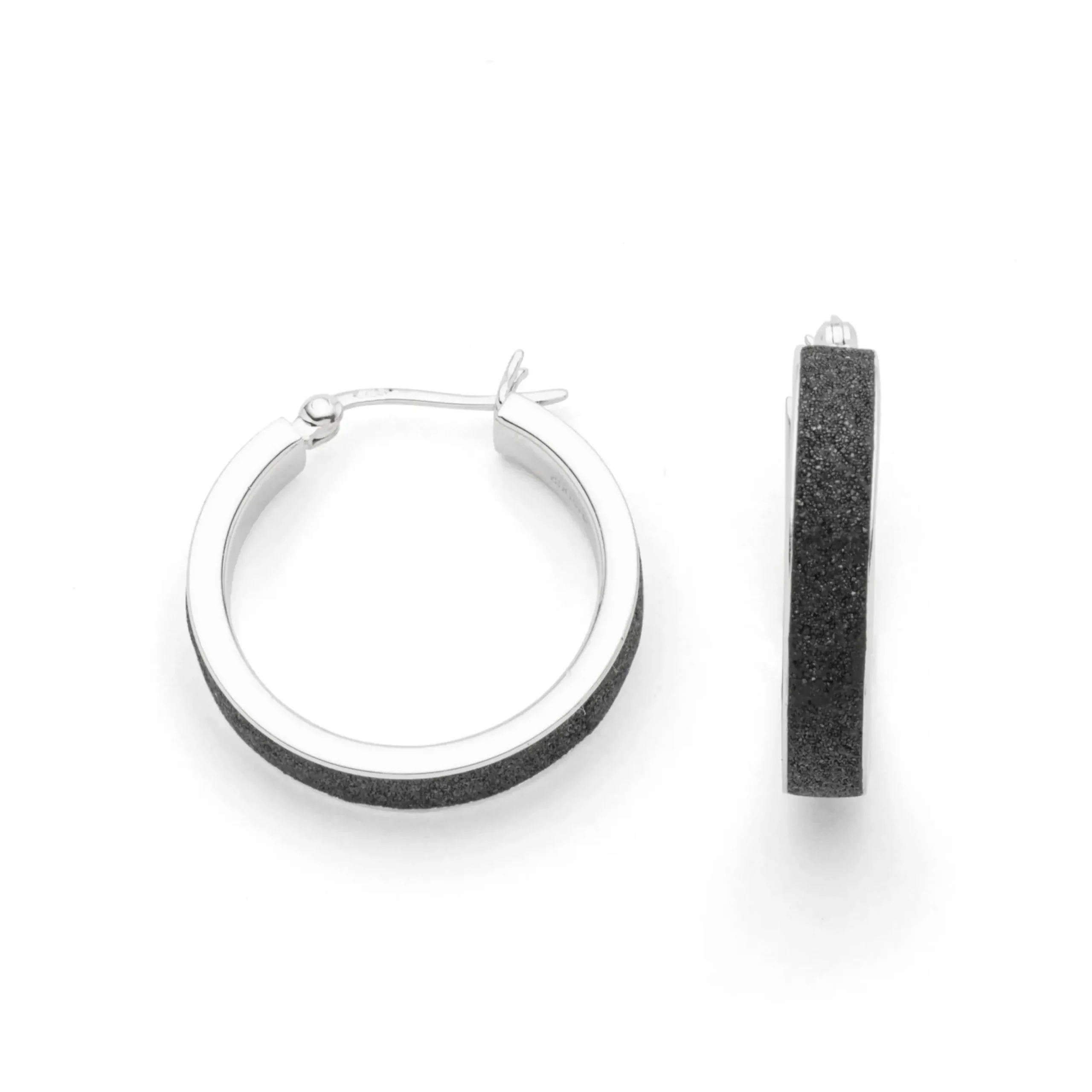 Creole rund 25,5 mm gefüllt mit Lavasand, gefaßt in rhodiniertem 925er Sterlingsilber.