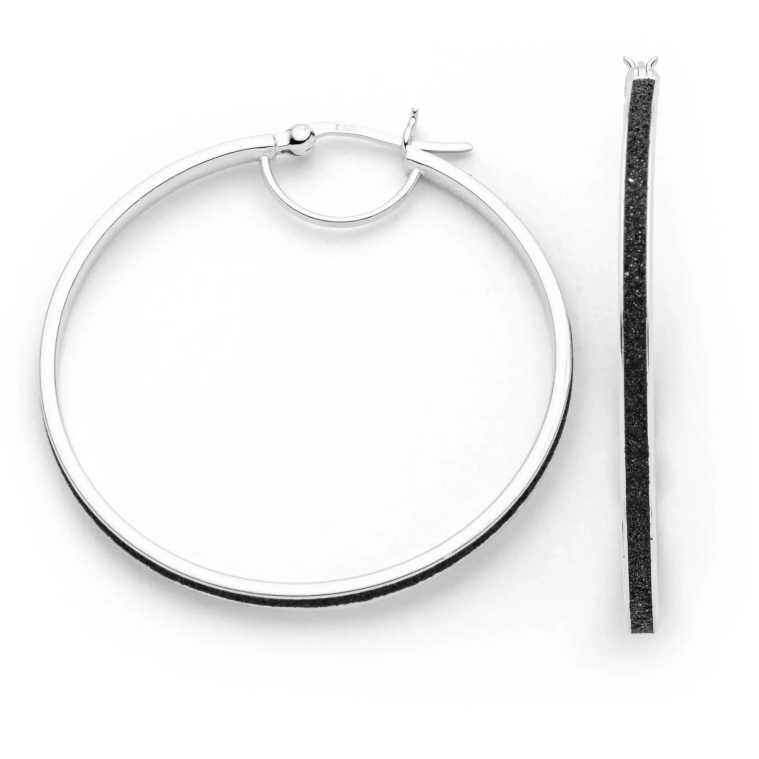 Creole rund 42,3 mm gefüllt mit Lavasand, gefaßt in rhodiniertem 925er Sterlingsilber.