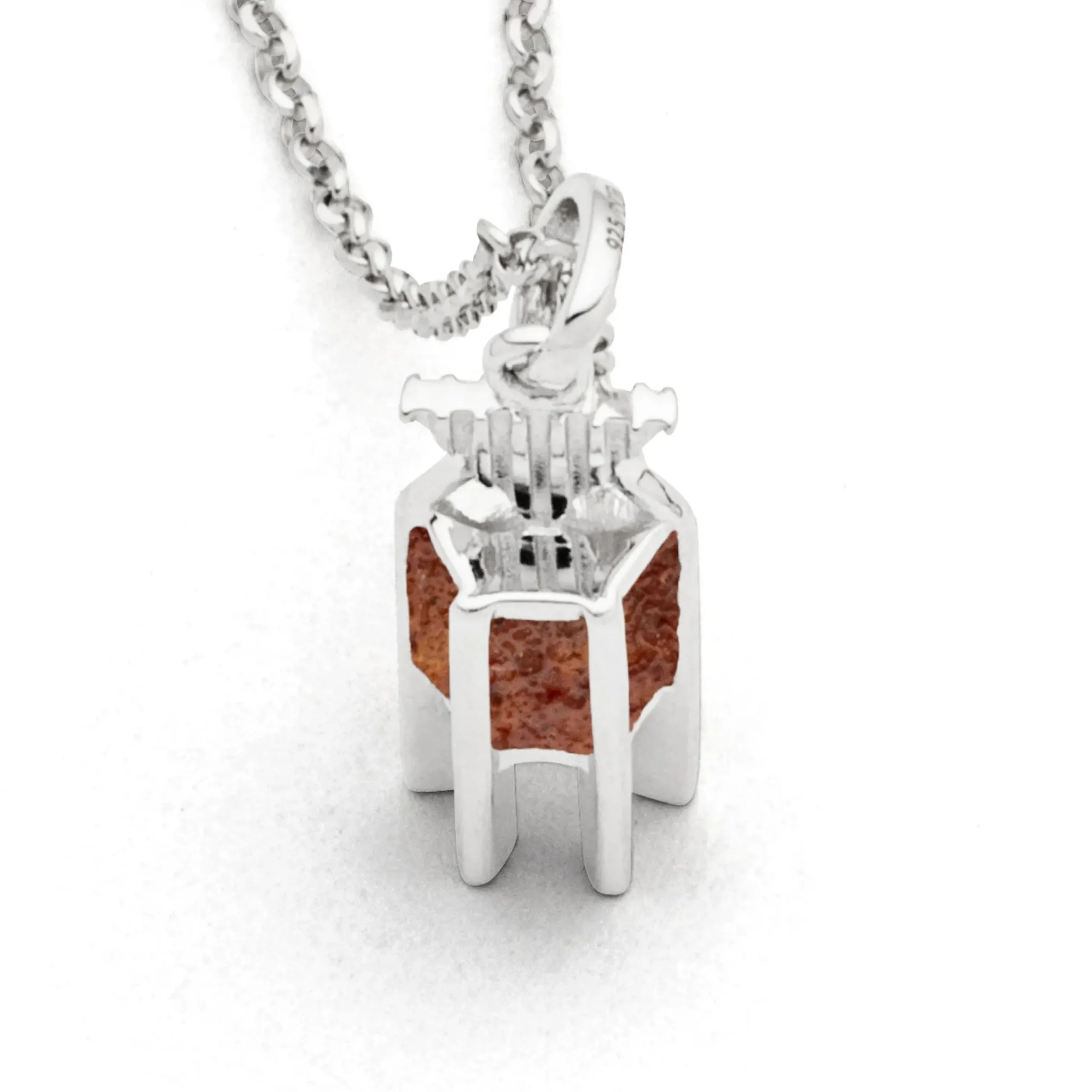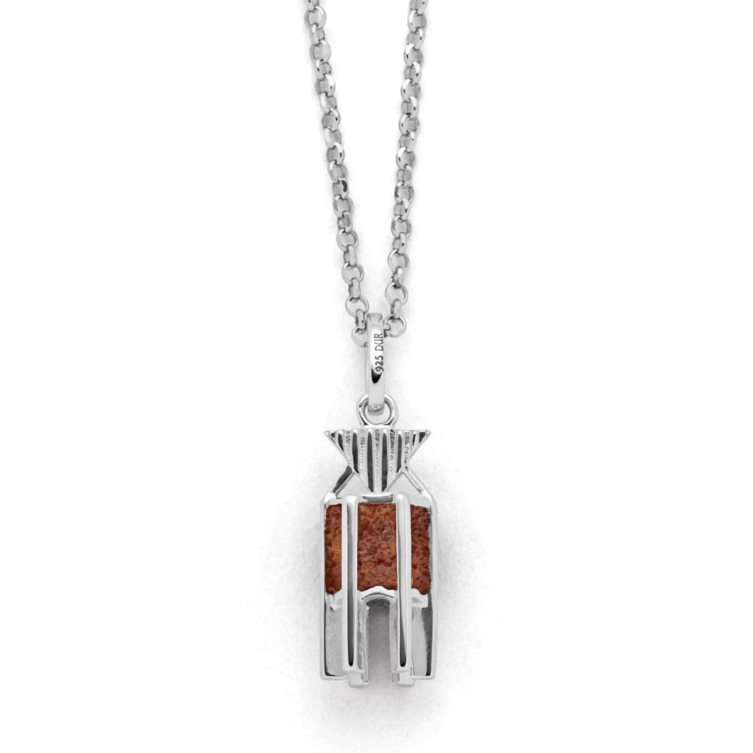 Echte Sehnsucht: Feine Erbskette rhodiniert mit einem Anhänger in Form der Kap Norderney Bake, teilweise gefüllt mit Bernsteinsand, alles aus poliertem und rhodiniertem 925er Sterling-Silber, ca. 45 cm lang. Durch die Rhodinierung ist das Schmuckstück anlaufgeschützt.