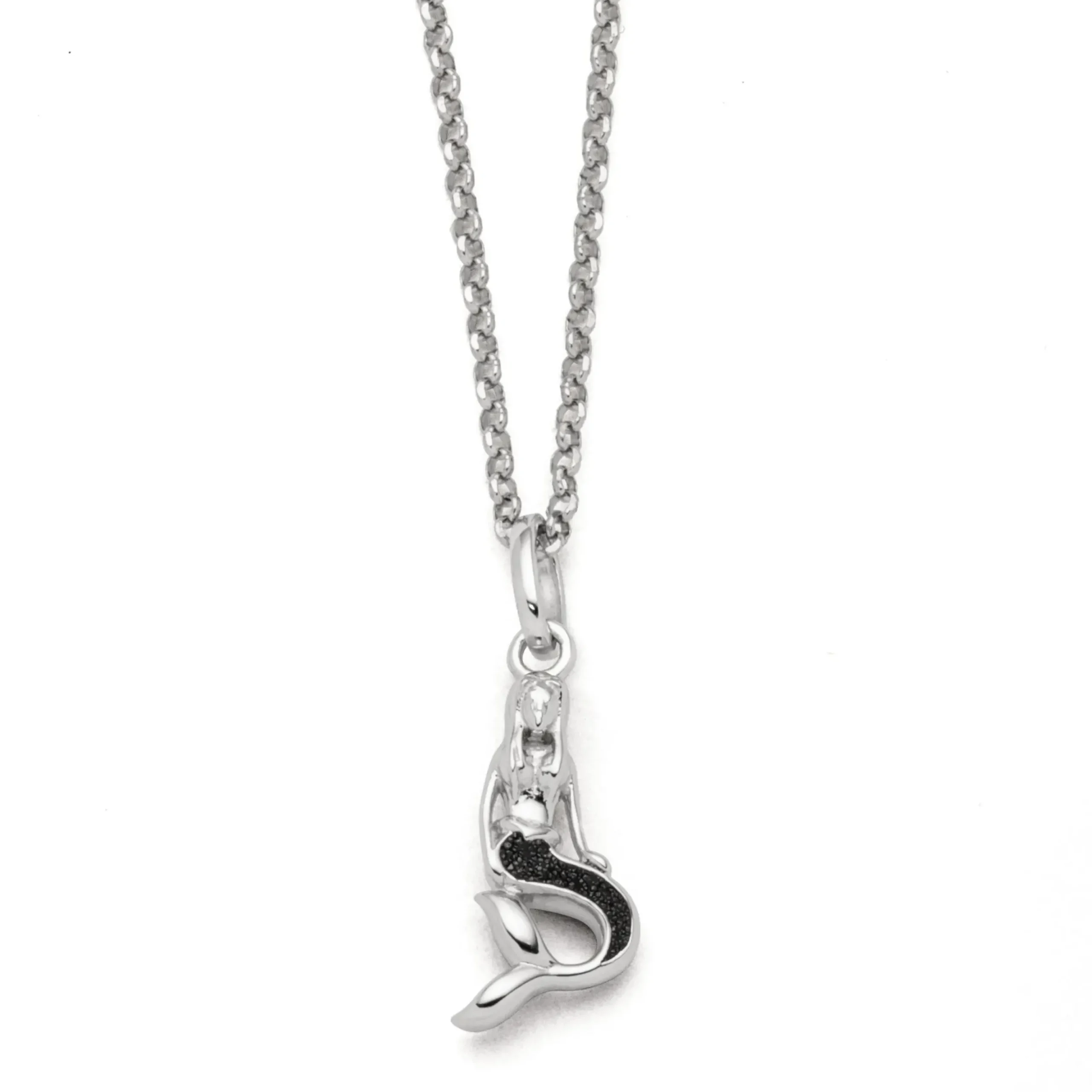 Echte Sehnsucht: Feine Erbskette rhodiniert mit einem Anhänger in Form einer Meerjungfrau, die Flosse gefüllt mit Lavasand, alles aus poliertem und rhodiniertem 925er Sterling-Silber, ca. 42 cm lang. Durch die Rhodinierung ist das Schmuckstück anlaufgeschützt.