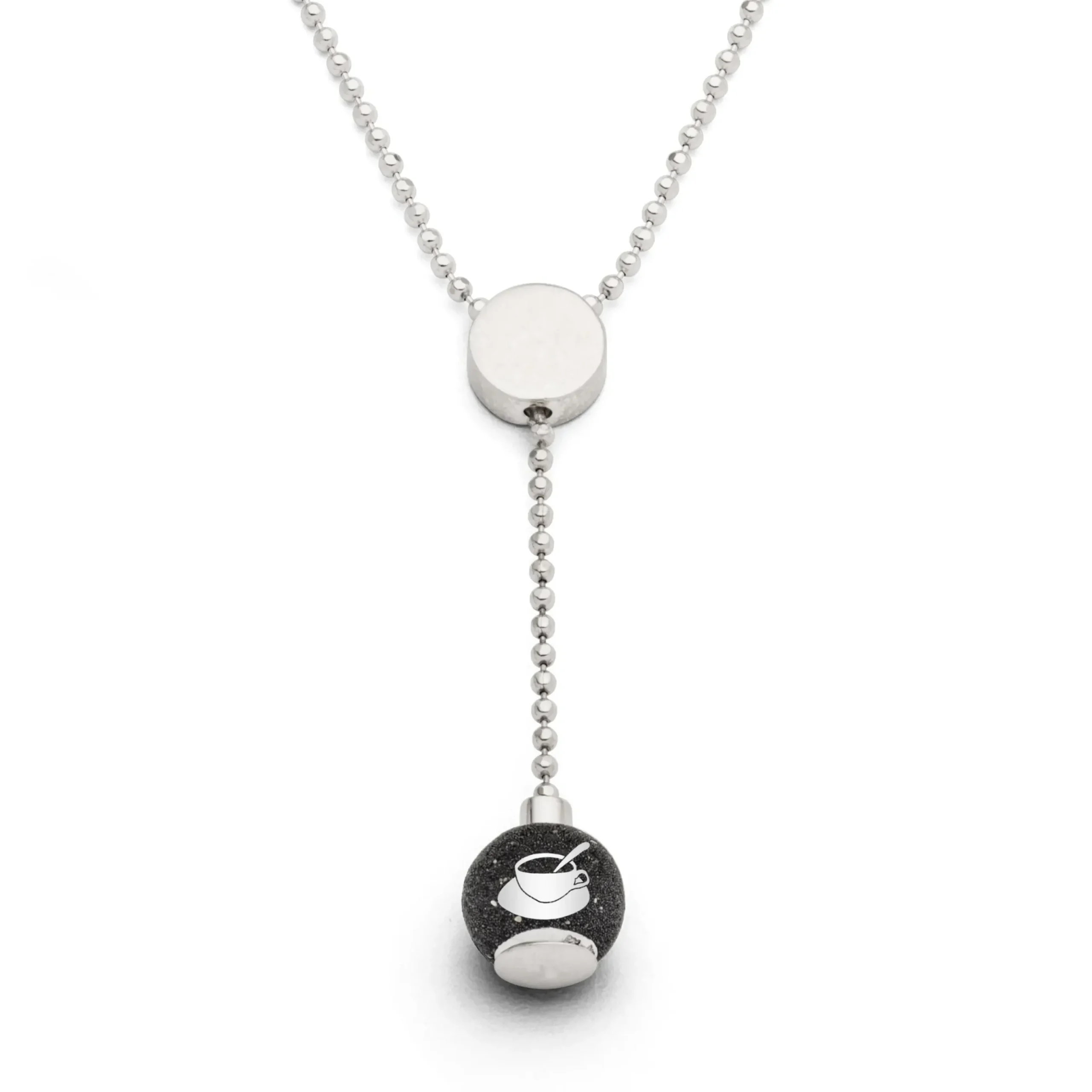 Kette „Ostfriesland“ Lavasand, kombiniert aus einer ca. 42 cm langen, rhodinierten Adapterkette und einem mit Lavasand gefüllten „Ostfriesland“ Bead, gefasst in rhodiniertem, 925er Sterling-Silber. Der Bead ist austauschbar.