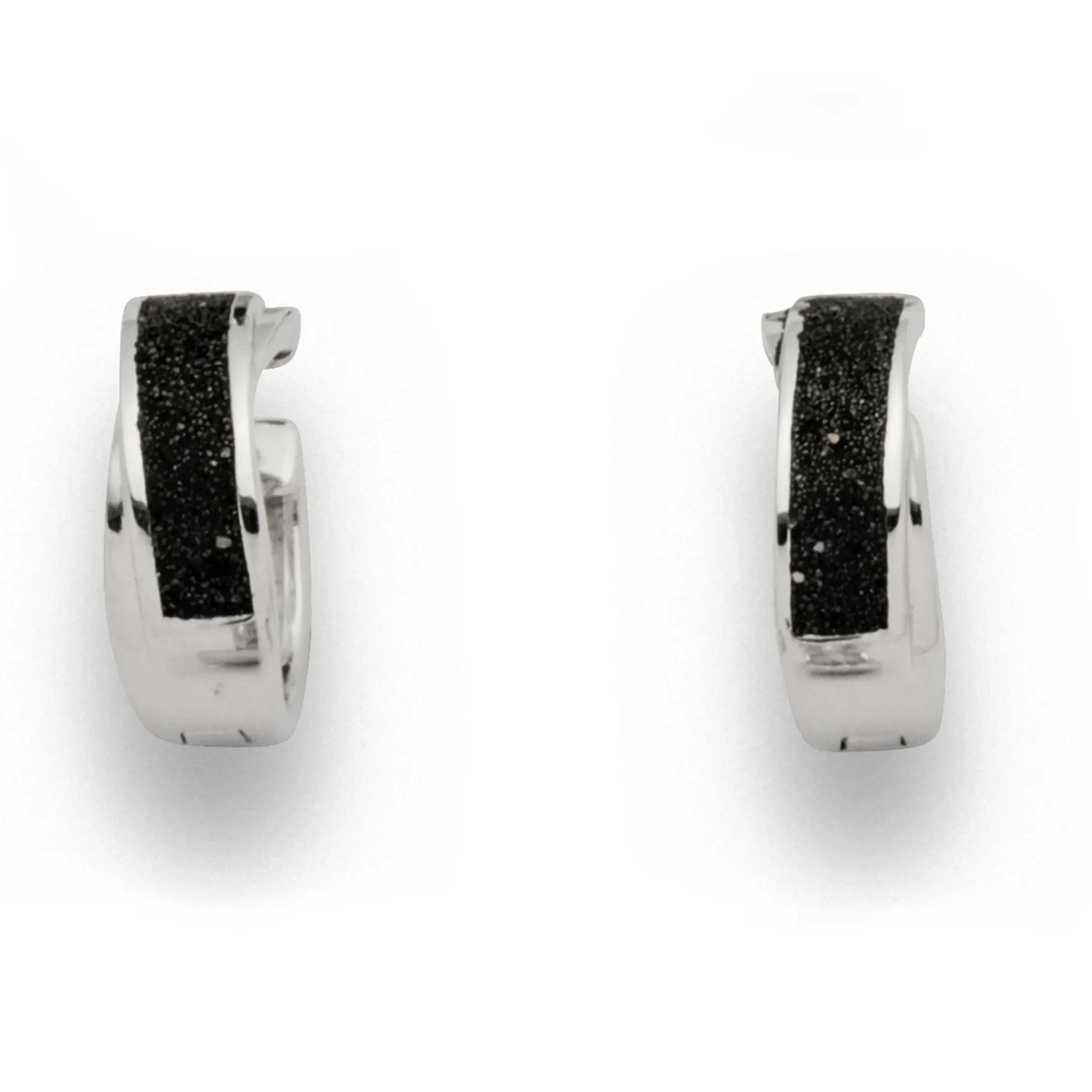 Klappcreole „Saturn“ mit leicht diagonal verlaufender Lavasand – Füllung. Gefaßt in rhodiniertem und poliertem 925er Sterlingsilber. Durch die Rhodinierung ist das Schmuckstück anlaufgeschützt.