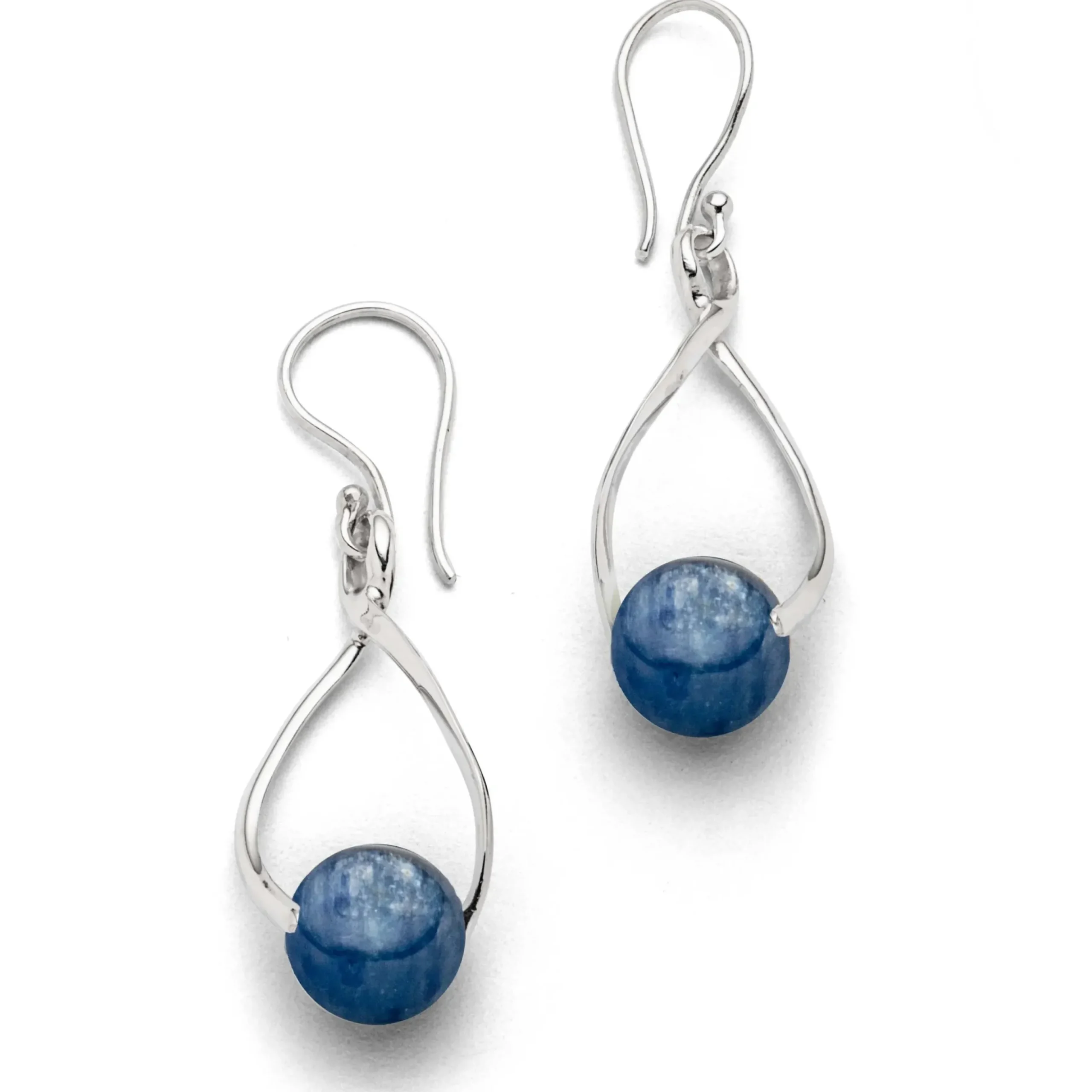 Ohrhänger „Swinging“, handgefertigt, mit einer beweglichen Kyanitkugel an einem gedrehten Silberelement aus 925er Sterling-Silber.