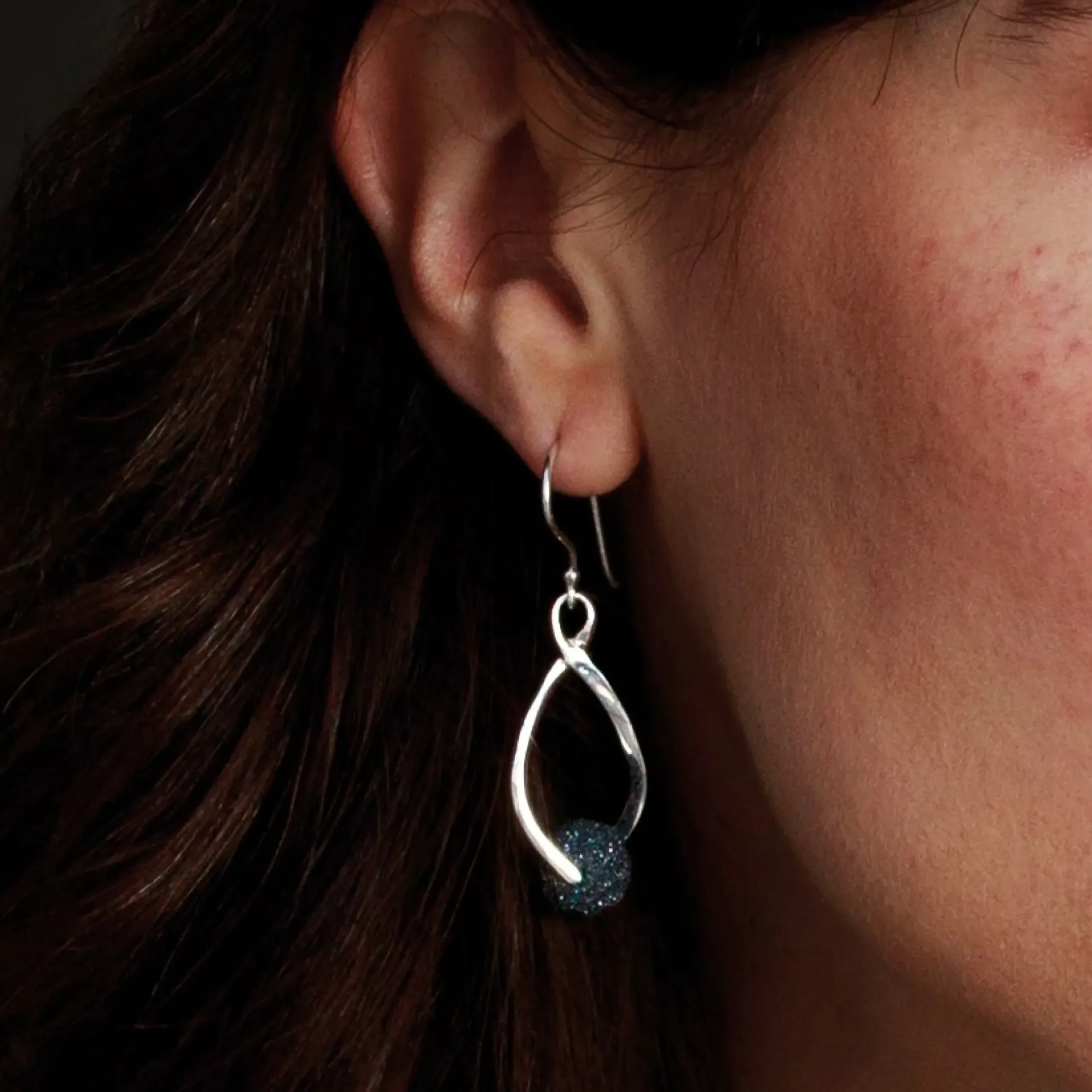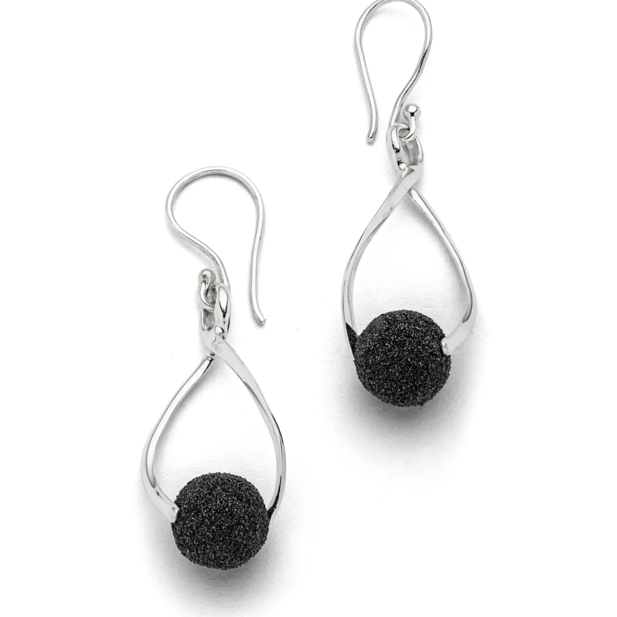 Ohrhänger „Swinging“, handgefertigt, mit einer beweglichen Lavasandkugel an einem gedrehten Silberelement aus 925er Sterling-Silber.