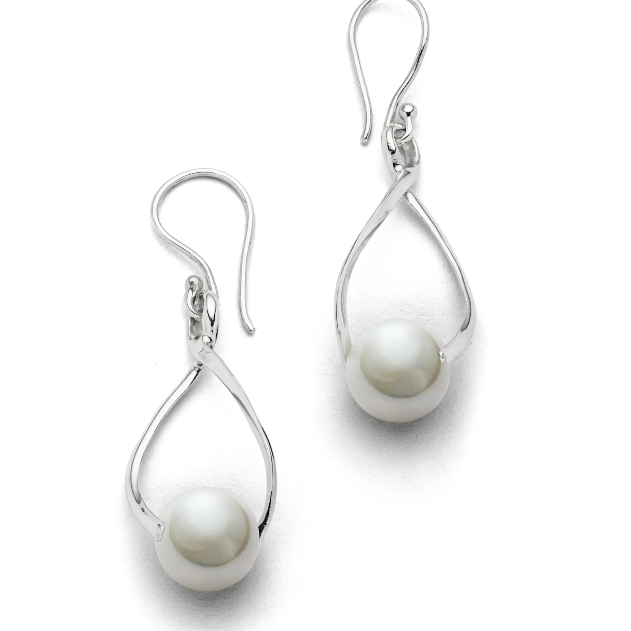 Ohrhänger „Swinging“, handgefertigt, mit einer beweglichen Süßwasserperle an einem gedrehten Silberelement aus 925er Sterling-Silber.