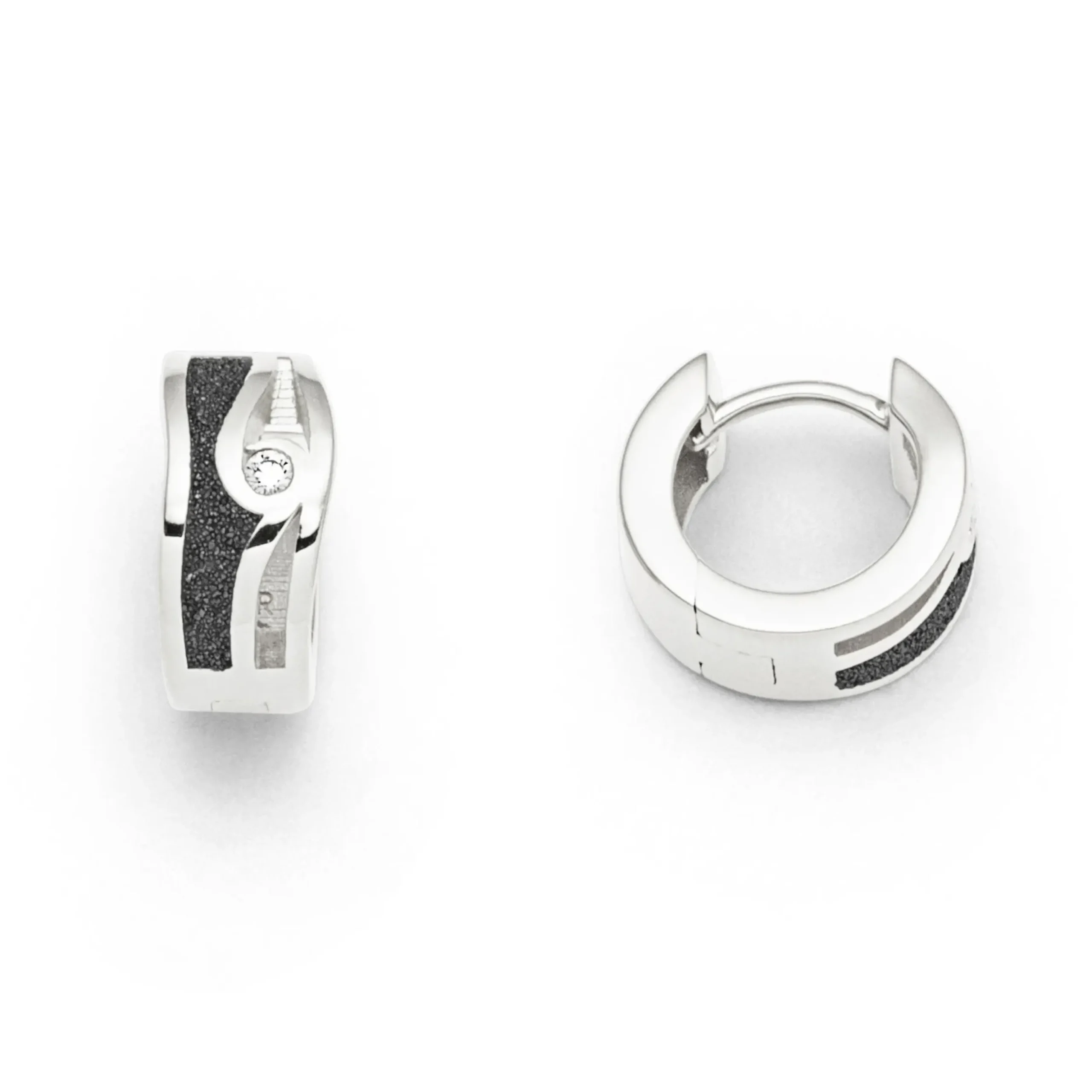 Ohrring „Maui“, Creole mit einer Lavasand befüllten Welle und einem Zirkonia 2mm, gefasst in rhodiniertem 925er Sterlingsilber