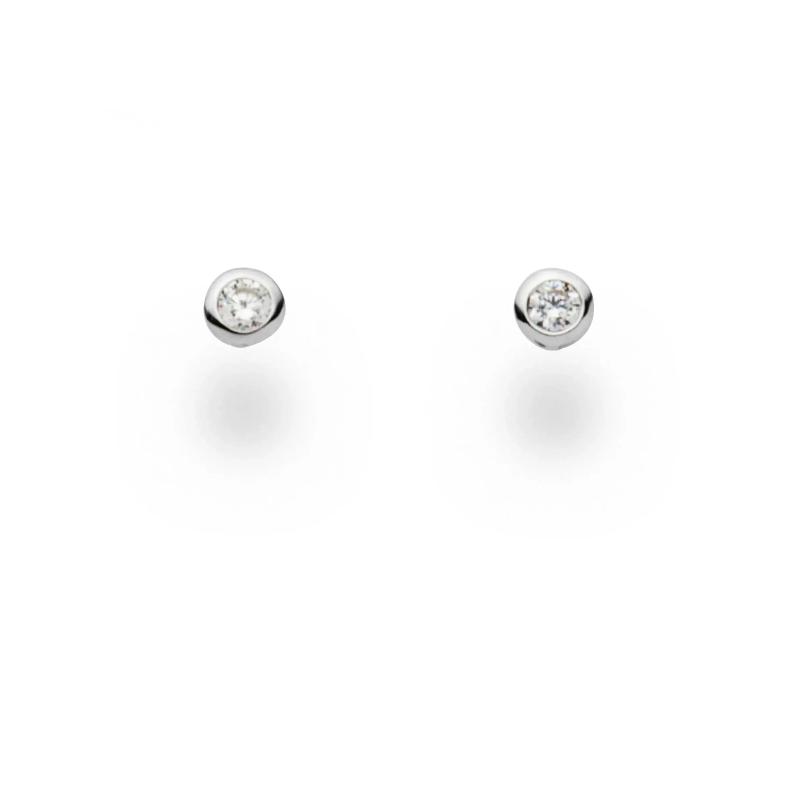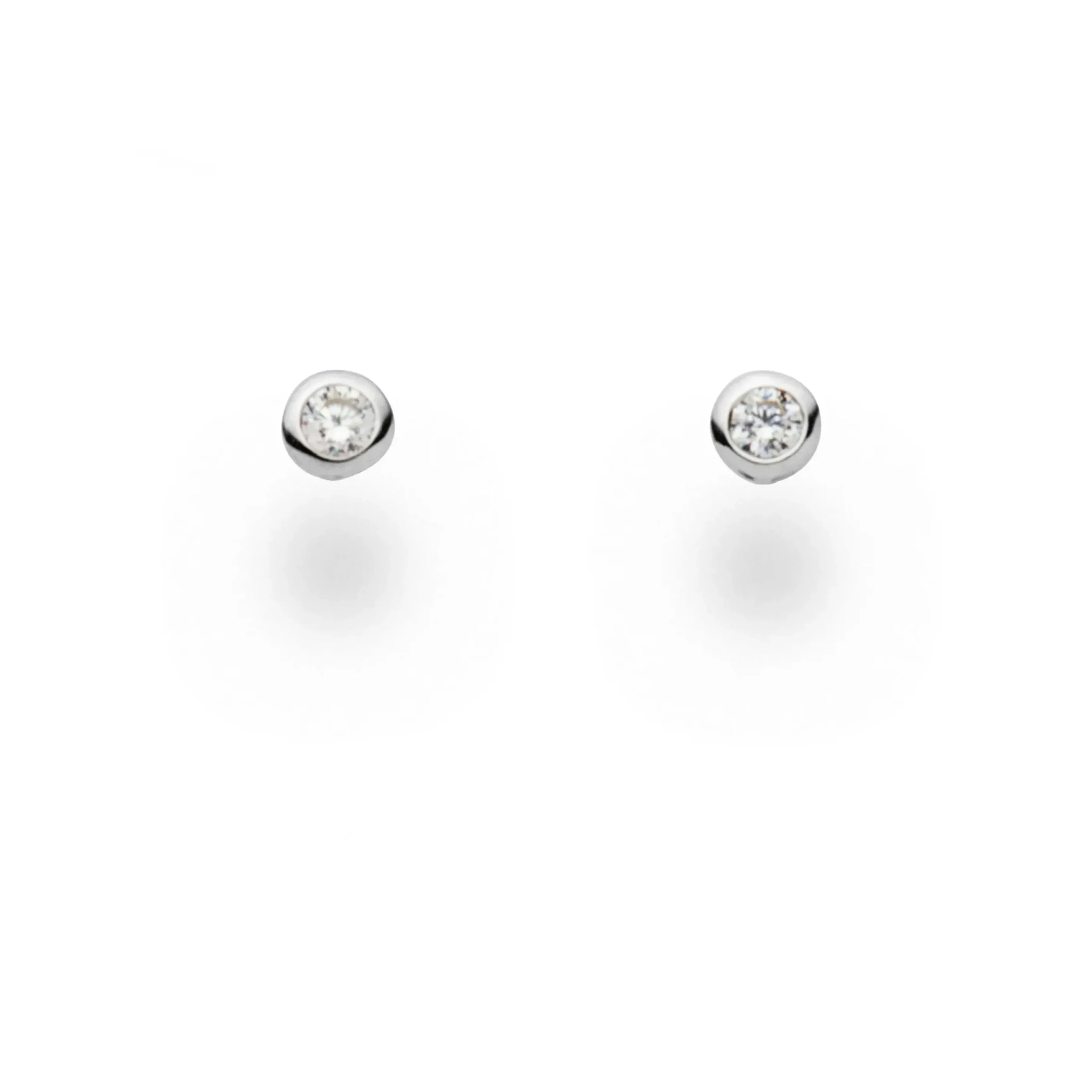 Kleiner, runder Ohrstecker mit einem 3 mm Zirkoniastein, gefaßt in rhodiniertem 925er Sterlingsilber