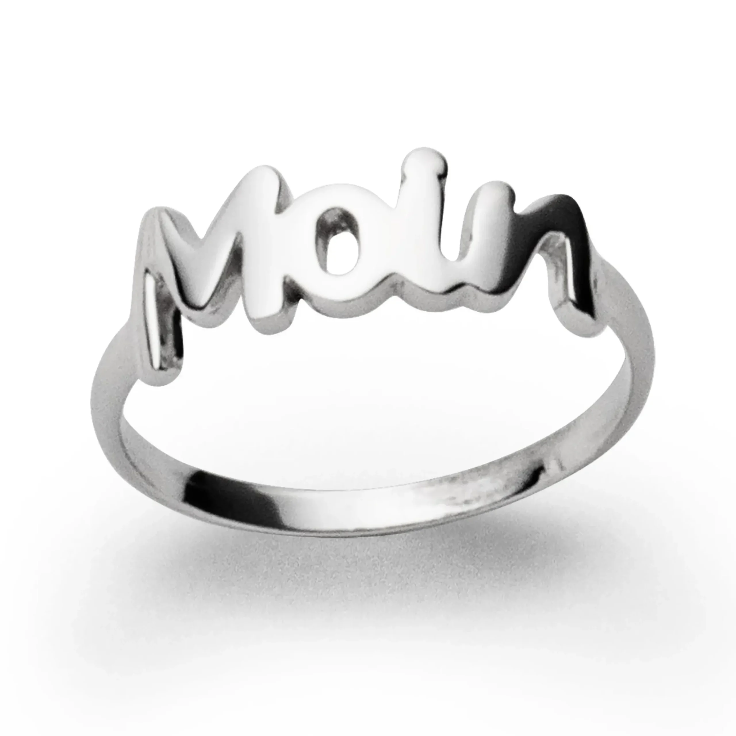 Ring „Moin“ feiner kleiner Ring, als Mittelteil das Wort „Moin“, alles aus rhodiniertem 925er Sterlingsilber.